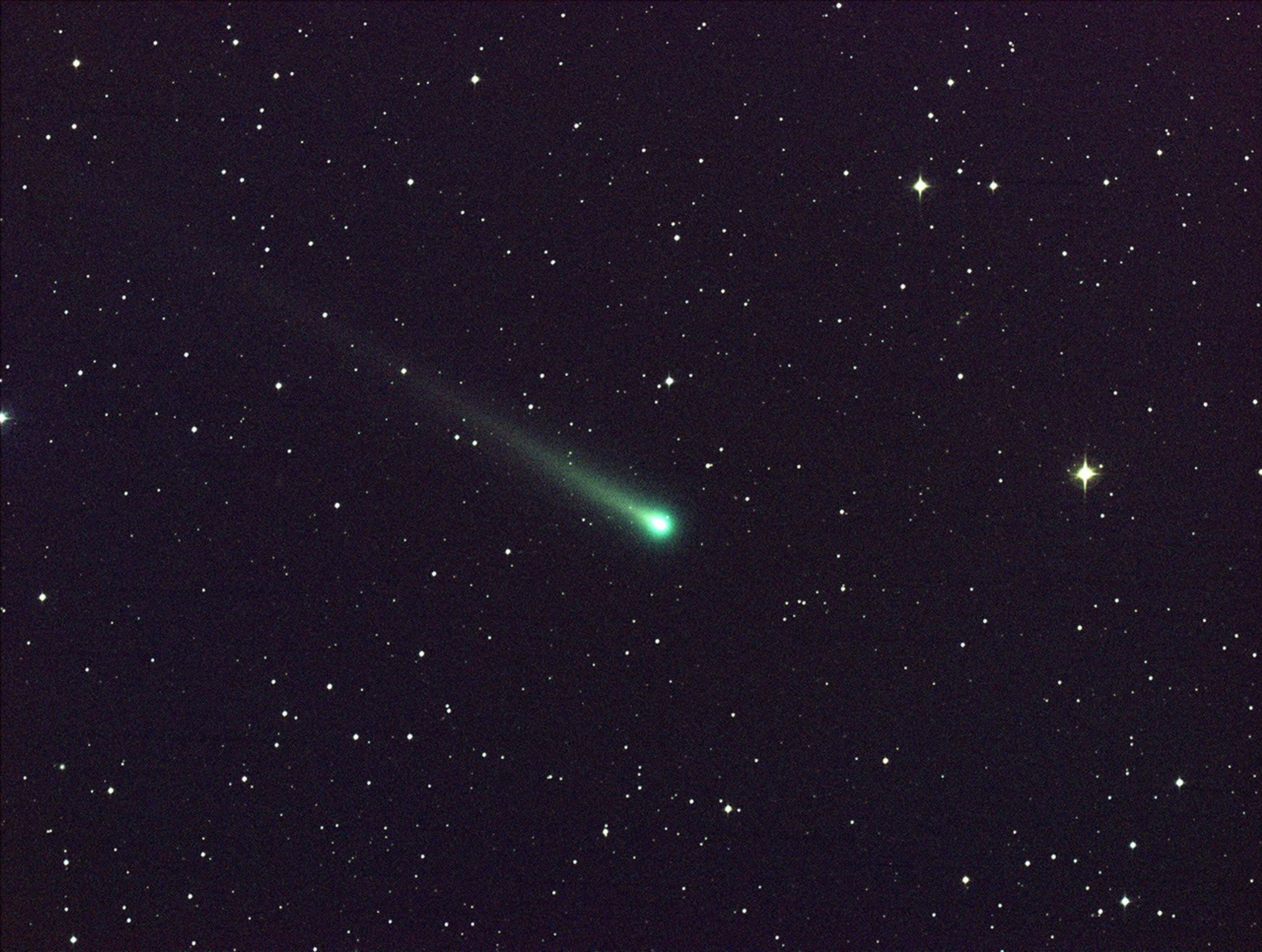 Comet ISON shines in this five-minute exposure taken at NASA's Marshall Space Flight Center on 8 Nov. at 5:40 a.m. EST. The image has a field of view of roughly 1.5 degrees by 1 degree and was captured using a color CCD camera attached to a 14" telescope located at Marshall. At the time of this picture, comet ISON was 97 million miles from Earth, heading toward a close encounter with the sun on 28. Nov. Located in the constellation of Virgo, it is now visible in a good pair of binoculars.