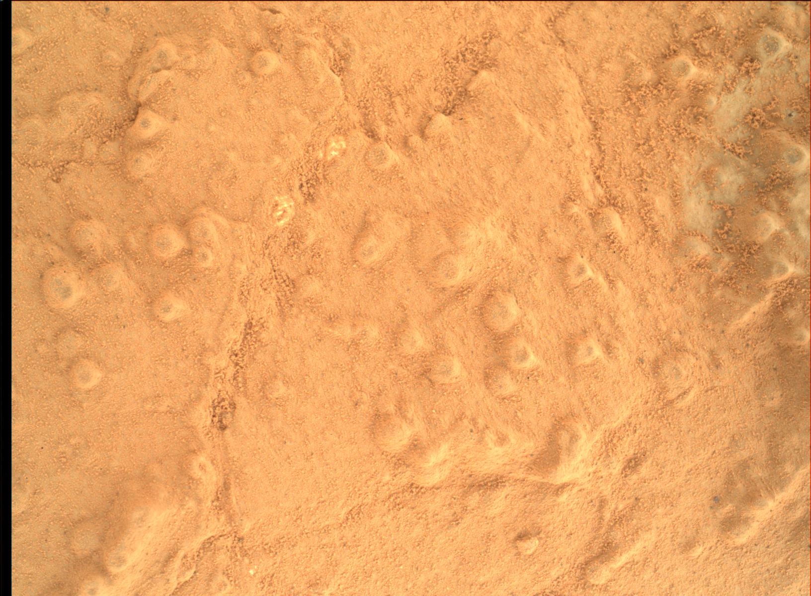 This image taken by the Mars Hand Lens Imager (MAHLI) on NASA's Mars rover Curiosity shows the texture of the patch of flat-lying bedrock called "Cumberland," which was the mission's second target for use of the rover's sample-collecting drill. Cumberland was selected to be similar to the first, "John Klein," but with a slightly greater concentration of erosion-resistant granules that cause surface bumps. The bumps are concretions, or clumps of minerals that formed when water soaked the rock long ago. Analysis of a sample containing more material from these concretions could provide information about the variability within the rock layers of both drill targets, John Klein and Cumberland.