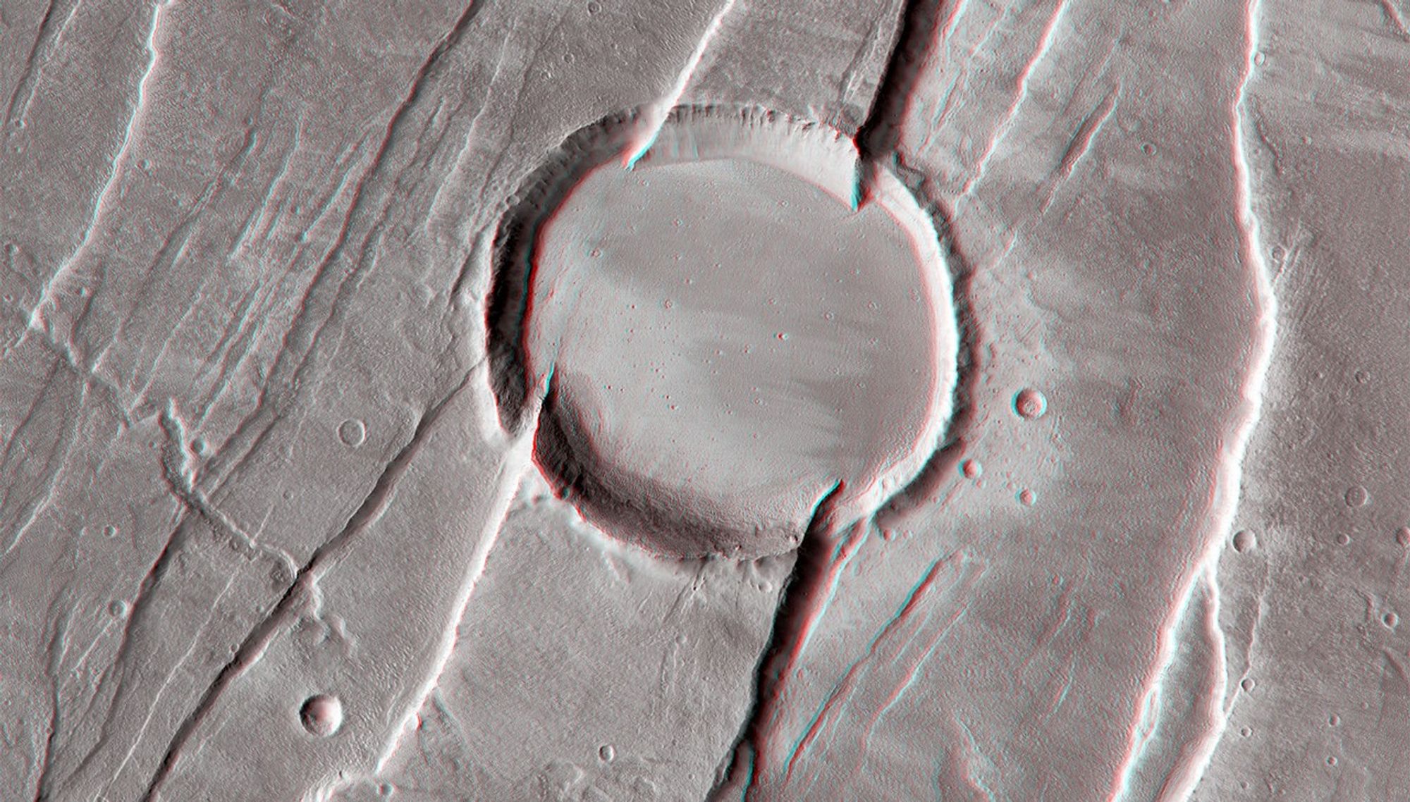 Crater in Tantalus Fossae (3-D)