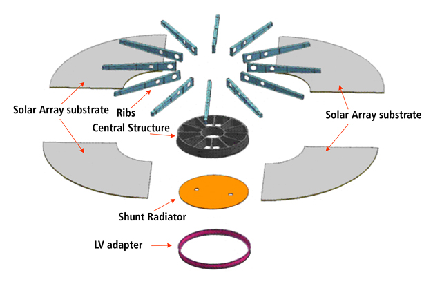 The cruise stage will have support ribs, solar arrays, a radiator, and an adapter for connecting the vehicle to the rockets that will launch it from Earth.