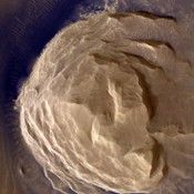 This image from NASA's Mars Reconnaissance Orbiter (MRO) shows blocks of layered terrain within the Olympus Mons aureole. The aureole is a giant apron of chaotic material around the volcano, perhaps formed by enormous landslides off the flanks of the giant volcano.