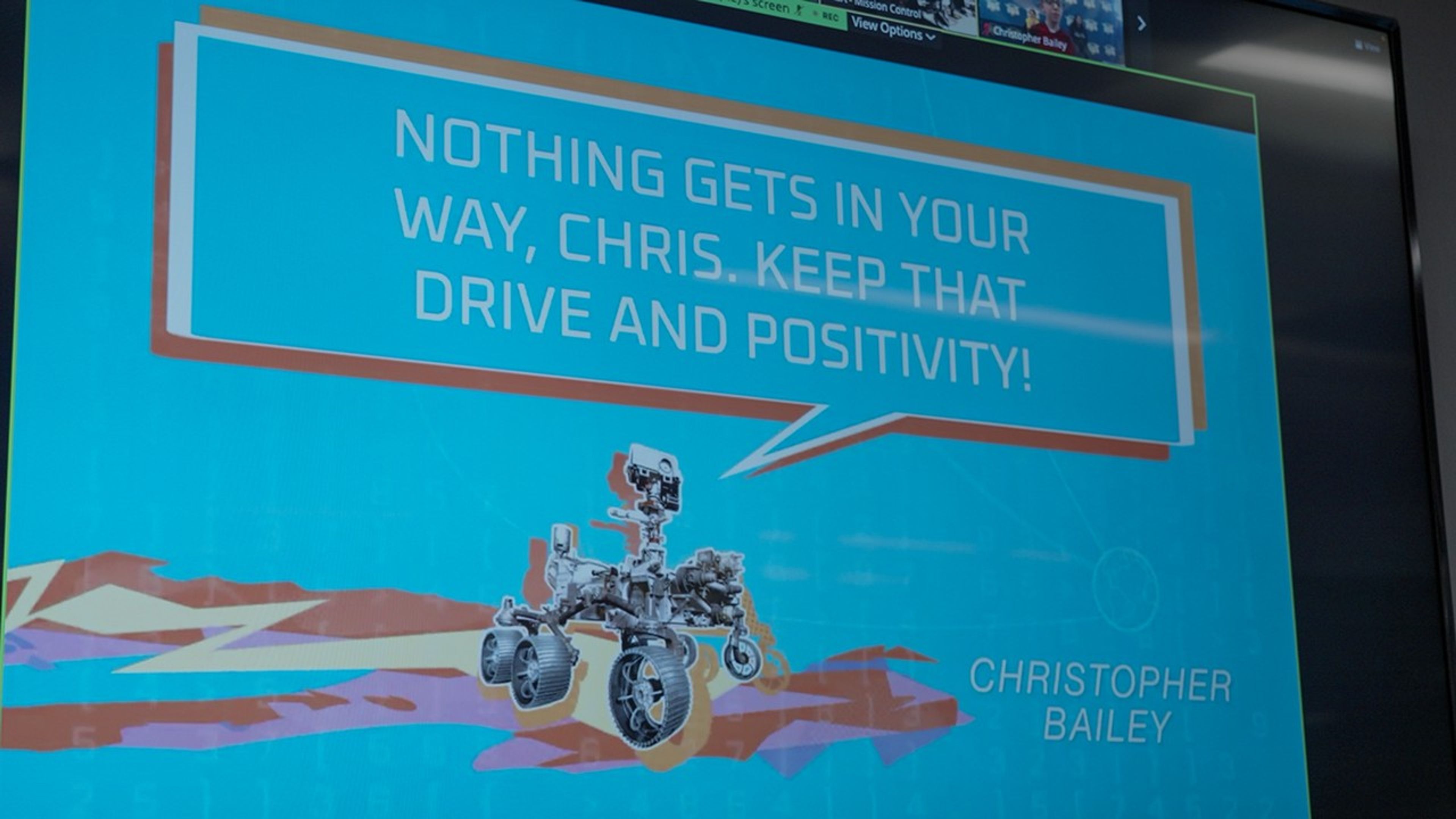 This is one of 11 digital messages beamed from Mars to students who have overcome academic challenges, on April 4, 2023. This greeting was presented during a live webinar from the rover's mission control area at NASA's Jet Propulsion Laboratory in Southern California, as part of the ongoing "You've Got Perseverance" campaign.