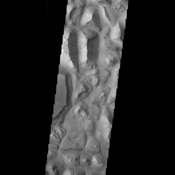 Note: this THEMIS visual image has not been radiometrically nor geometrically calibrated for this preliminary release. An empirical correction has been performed to remove instrumental effects. A linear shift has been applied in the cross-track and down-track direction to approximate spacecraft and planetary motion. Fully calibrated and geometrically projected images will be released through the Planetary Data System in accordance with Project policies at a later time.