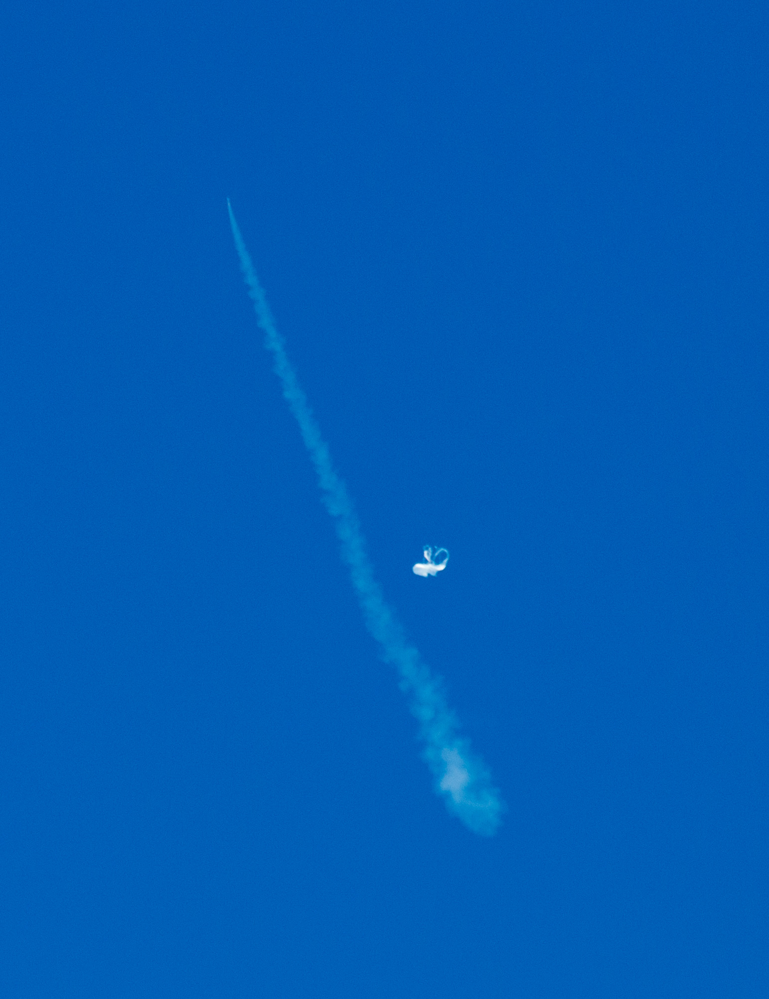 This image, taken by a member of NASA's Low-Density Supersonic Decelerator team onboard a recovery vessel, shows the initial moments of the June 28, 2014, powered flight of the saucer-shaped test vehicle. In the image, the test vehicle is unseen at the tip of the slash-like contrail at the upper left. Just to the right and of the contrail, and about a third of the way up, is the balloon which carried the saucer to 120,000 (37,000 meters) above the waters of the U.S. Navy's Pacific Missile Range.