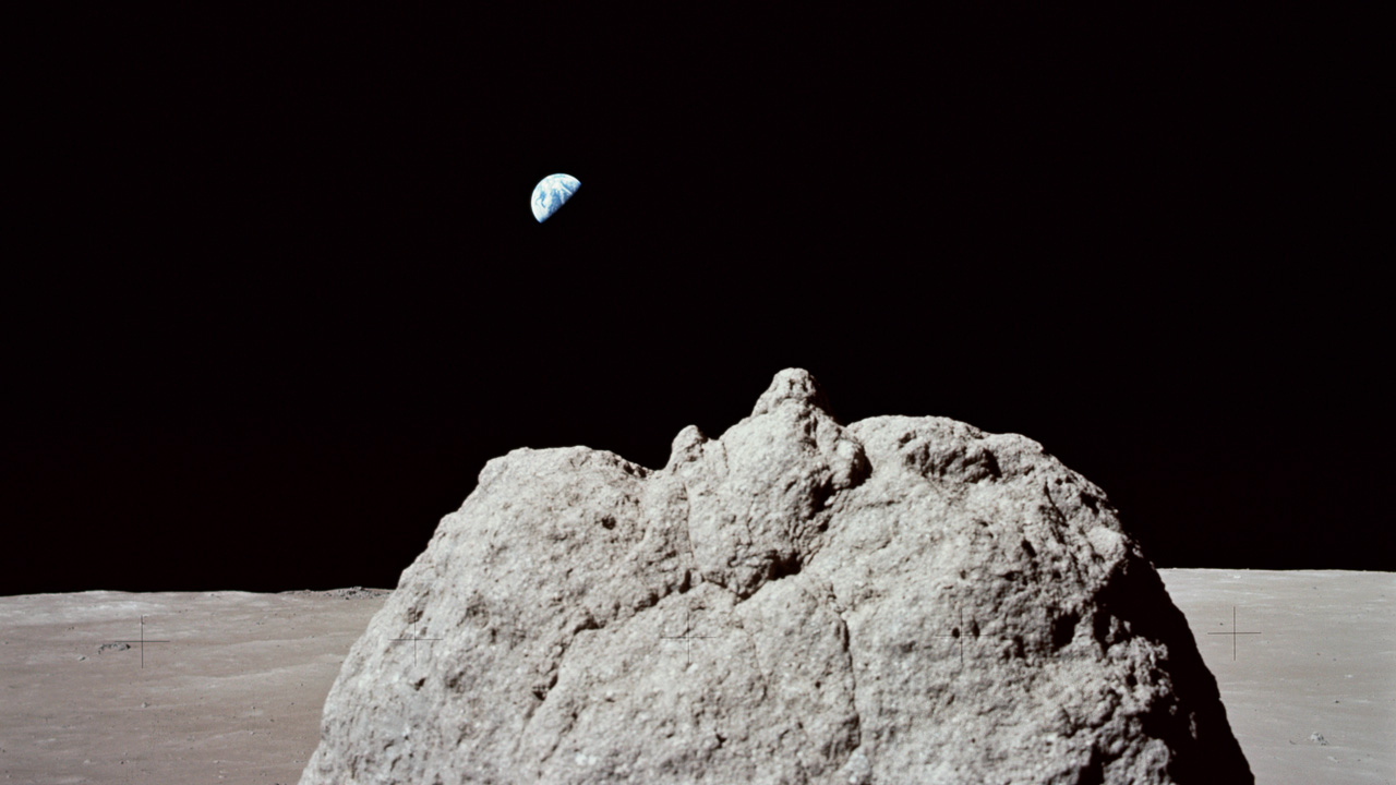 The closest look we’ve had at the moon came from the launch of NASA’s Apollo program in the 1960s. Between 1967 and 1972, a series of missions landed the first men on the moon. Equipped with handheld cameras, Apollo astronauts documented their journey, capturing photos of the moon and its rocky terrain through surveys conducted from lunar orbit and on the ground. The collection of moon exploration photos includes up-close views of impact craters, mountain ranges, volcanic channels and maria—dark regions believed to have been formed from molten rock. The images are part of a massive archive of more than 14,000 photos taken by Apollo astronauts.