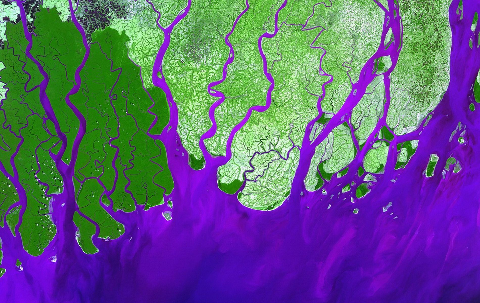 The Ganges River forms an extensive delta where it empties into the Bay of Bengal. The delta, largely covered with a swamp forest, is home to most of Bangladesh, one of the world’s most densely populated countries and a nation that is particularly vulnerable to climate change. As the climate changes, low-lying Bangladesh will increasingly face issues such as food insecurity, sea level rise and more frequent and intense extreme weather events. About 120 million people live on the Ganges Delta under the threat of repeated catastrophic floods due to heavy runoff of meltwater from the Himalayas and due to the intense rainfall during the monsoon season.