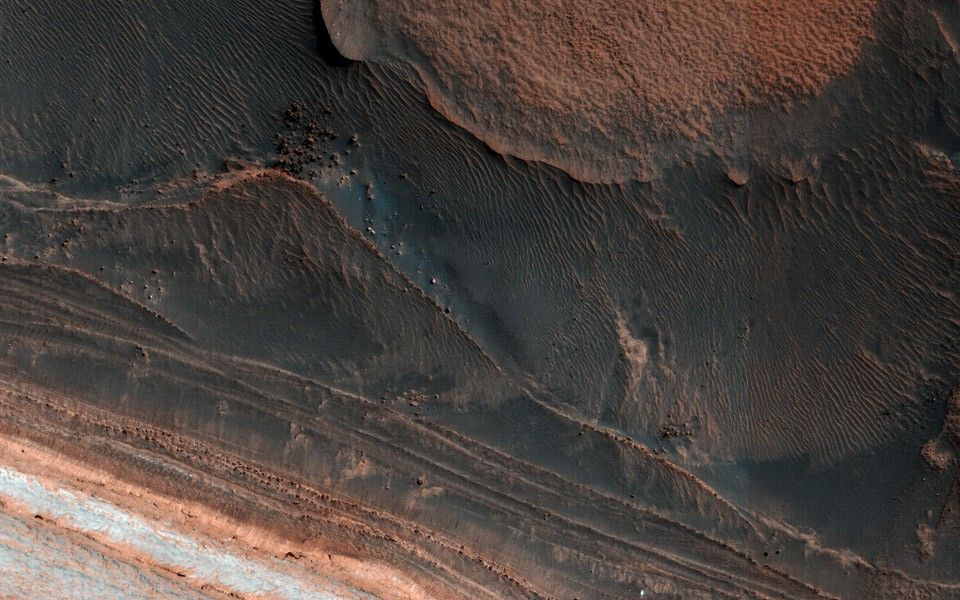 One of the most actively changing areas on Mars are the steep edges of the North Polar layered deposits. This image from NASA's Mars Reconnaissance Orbiter (MRO) shows many new ice blocks compared to an earlier image in December 2006. An animation shows one example, where a section of ice cliff collapsed. The older image (acquired in bin-2 mode) is not as sharp as the newer one.