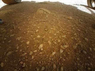 This low-resolution view of the floor of Mars’ Jezero Crater and a portion of two wheels of NASA’s Perseverance Mars rover was captured by the color imager aboard the agency’s Ingenuity Mars helicopter. The image was taken on April 3, 2021, while the solar-powered rotorcraft was still beneath the rover after being deployed. A few higher-resolution images are expected to be acquired by this imager during each of Ingenuity’s test flights.