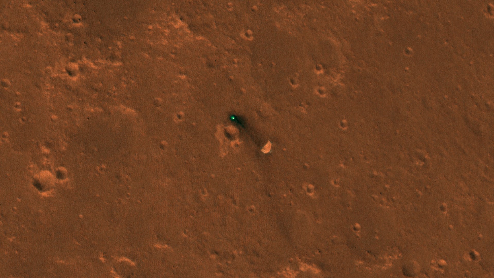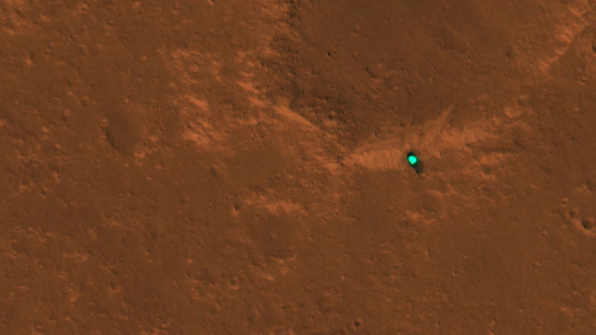 NASA's InSight spacecraft, its heat shield and its parachute were imaged on Dec. 6 and 11 by the HiRISE camera onboard NASA's Mars Reconnaissance Orbiter.