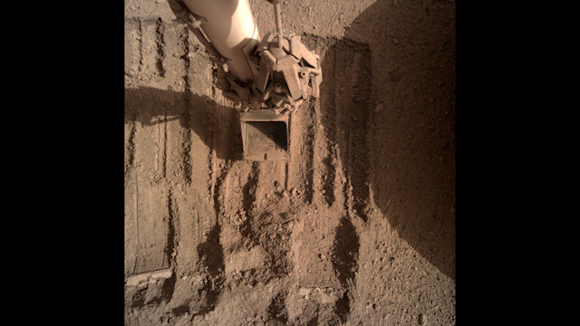 InSight’s Robotic Arm Helps Remove Solar Panel Dust Trickles Sand in the Wind
