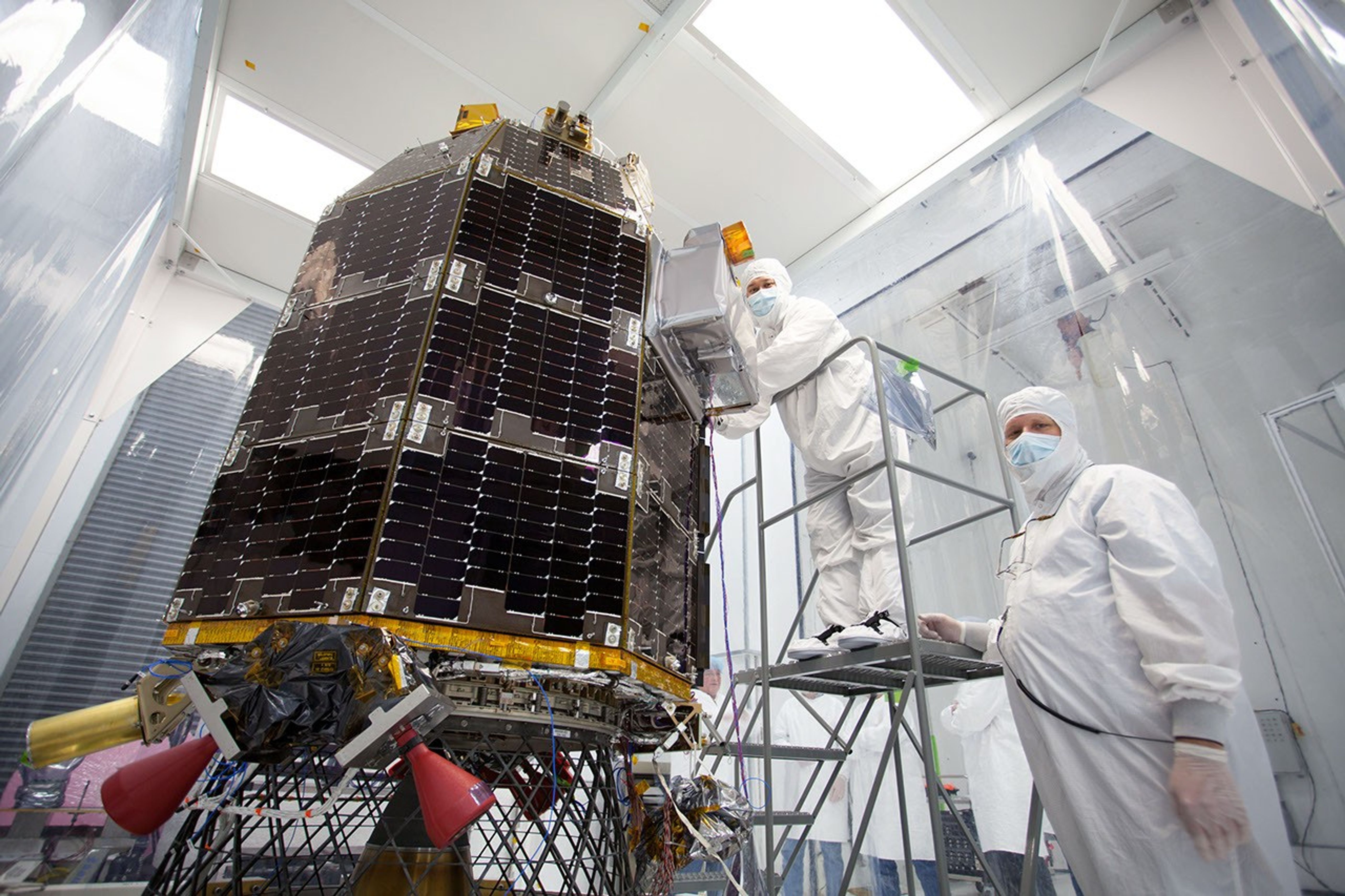 Engineers at NASA's Ames Research Center, Moffett Field, Calif., prepare NASA's Lunar Atmosphere and Dust Environment Explorer (LADEE) Observatory for acoustic environmental testing.