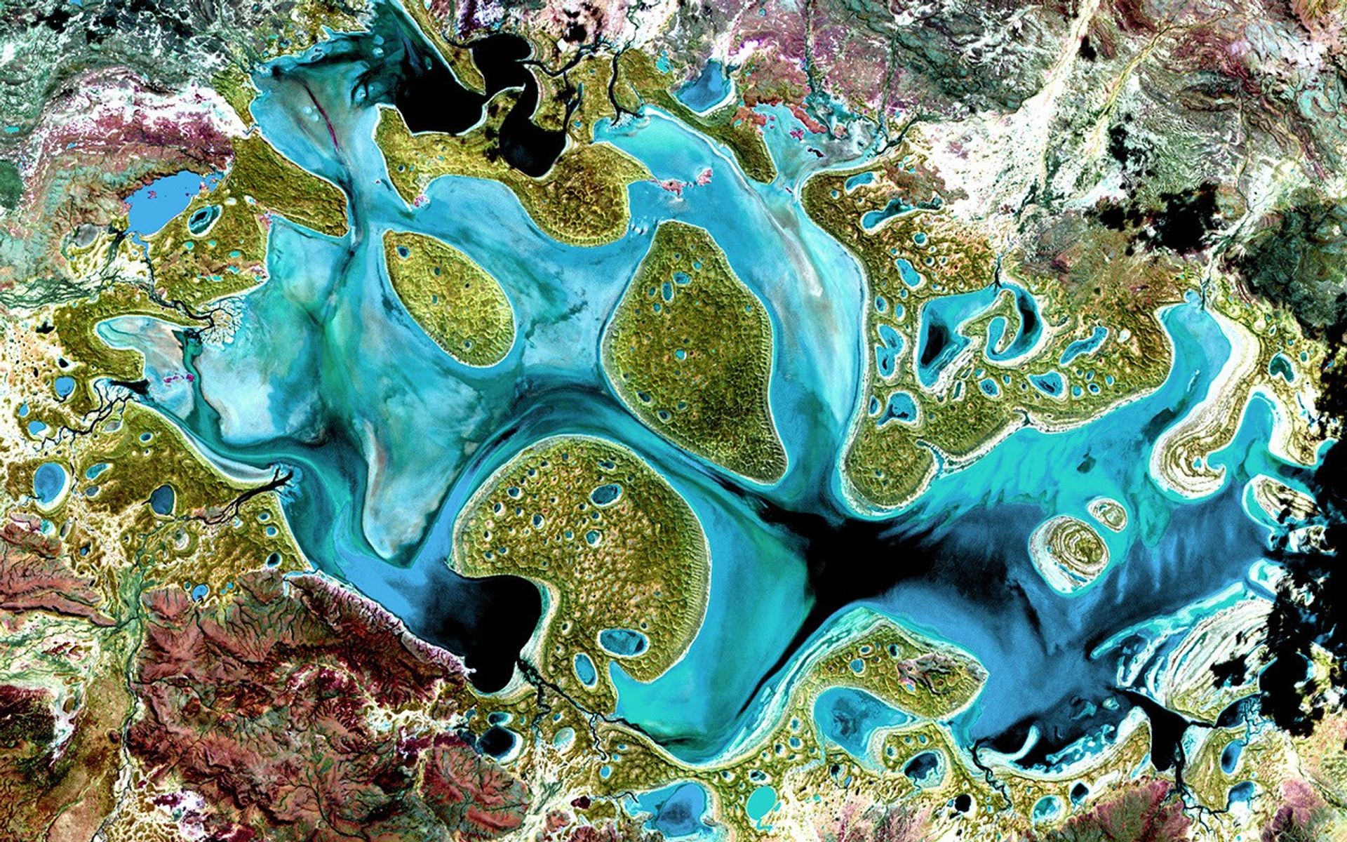 Ephemeral Lake Carnegie, in Western Australia, fills with water only during periods of significant rainfall. In dry years, it is reduced to a muddy marsh.