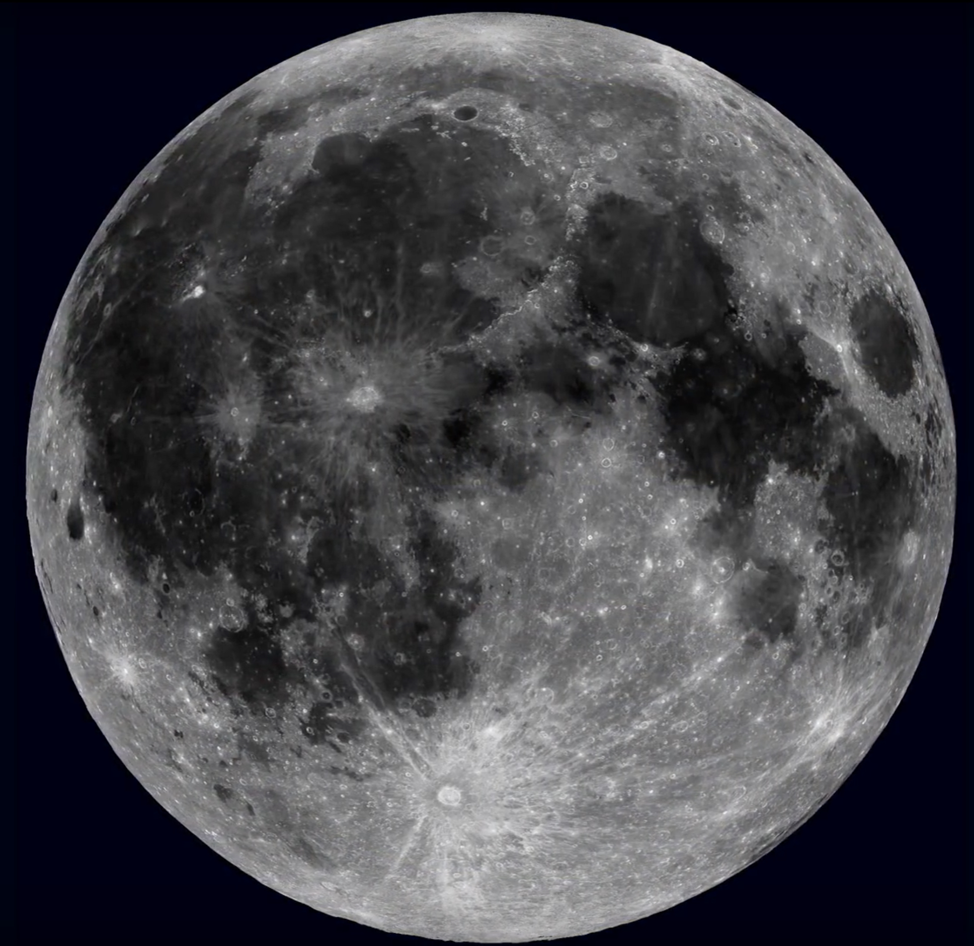 The near side of Earth's Moon, as seen using data from cameras aboard NASA's robotic Lunar Reconnaissance Orbiter spacecraft.