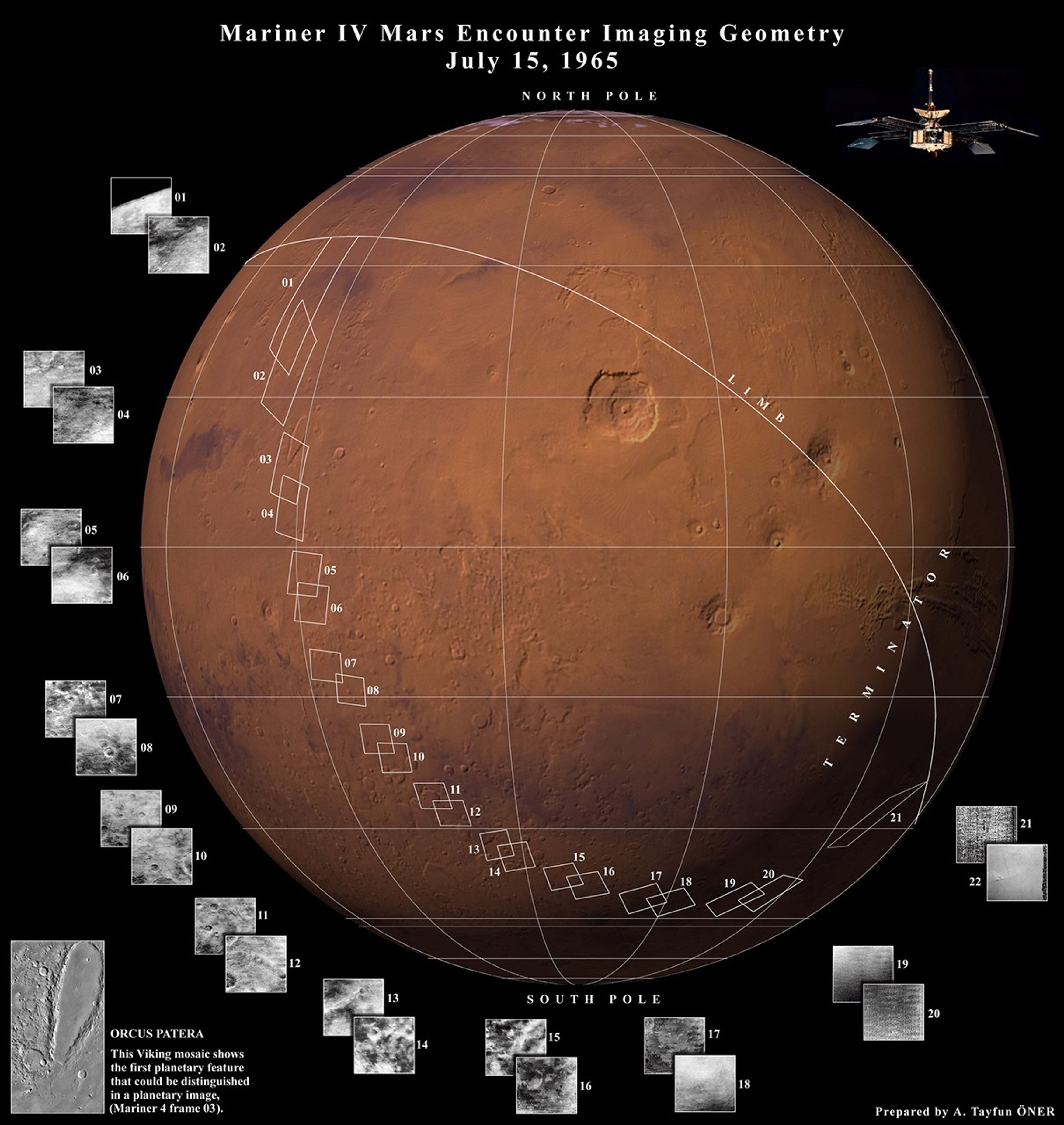 This diagram shows the flyby route of NASA's Mariner 4 and the locations of the 22 images taken by the spacecraft.