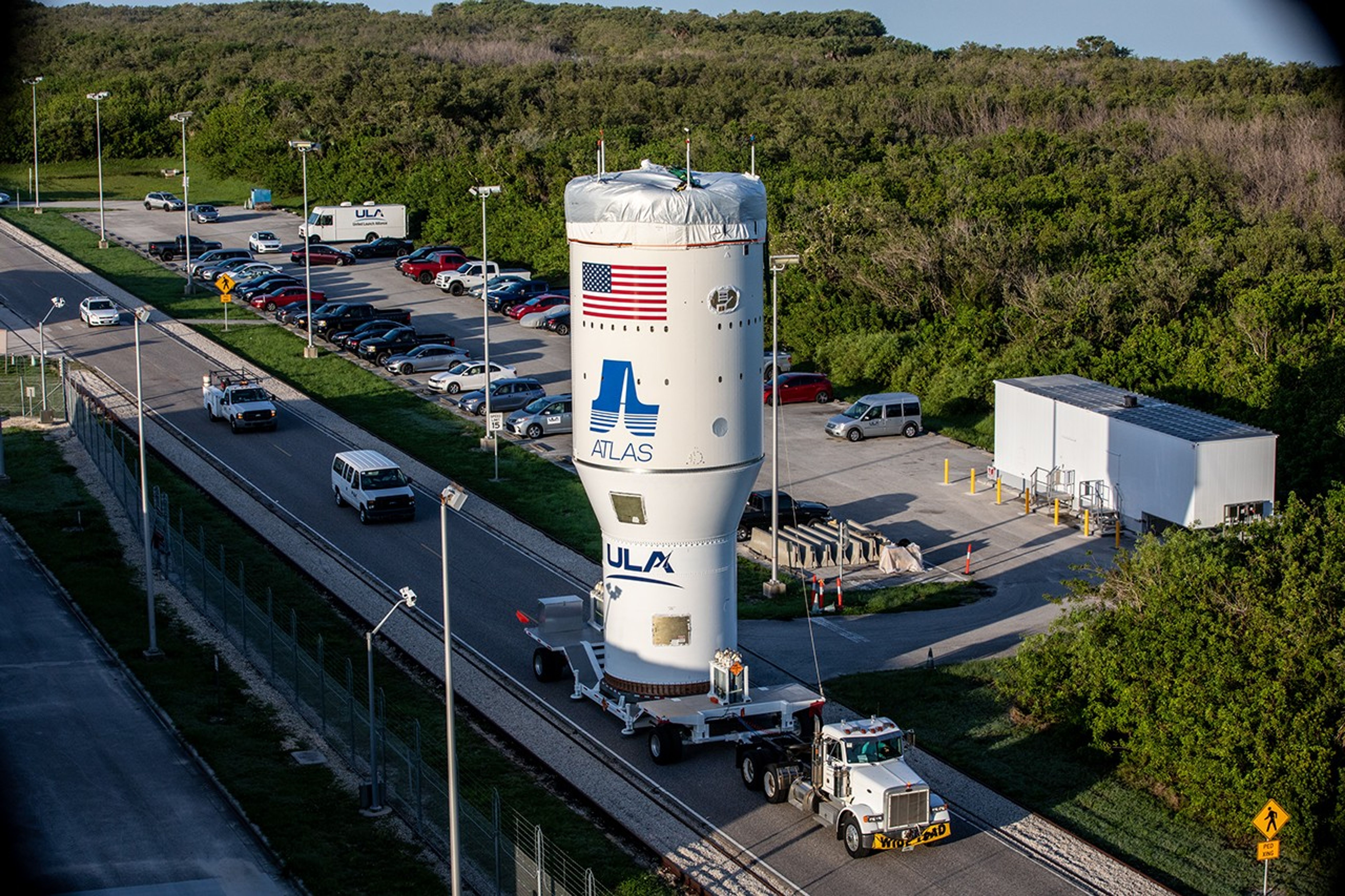 The single-engine Centaur upper stage for the United Launch Alliance Atlas V rocket for NASA’s Mars Perseverance rover is being transported to the Vertical Integration Facility at Space Launch Complex 41 at Cape Canaveral Air Force Station in Florida on June 10, 2020. The Centaur will be lifted up and attached to the rocket’s first stage. The Mars Perseverance rover is scheduled to launch atop the Atlas V 541 rocket from Pad 41 on July 20, 2020. The rover is part of NASA’s Mars Exploration Program, a long-term effort of robotic exploration of the Red Planet. The rover’s seven instruments will search for habitable conditions in the ancient past and signs of past microbial life on Mars. The Launch Services Program at Kennedy is responsible for launch management.