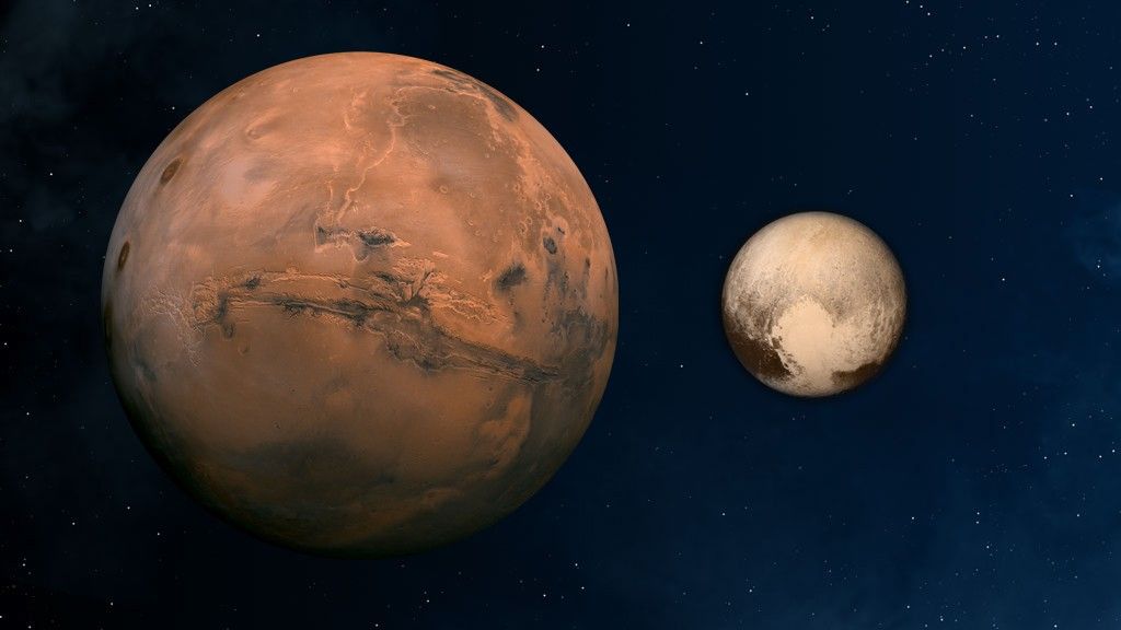 People have called Mars the Red Planet for centuries, but Mars might have to share that name. Dwarf planet Pluto also has a reddish hue, but for a very different reason. The surface of Mars contains lots of iron minerals. These minerals oxidize, or rust, in the presence of oxygen, and in the distant past, liquid water. The entire surface of Mars is literally rusty dust! We don’t know yet why Pluto is reddish, but chemistry appears to be the culprit! Sunlight could cause hydrocarbons (e.g., methane and carbon monoxide) on Pluto’s icy surface and in its chilly atmosphere to combine, forming compounds that rain red-hued materials upon the dwarf planet. Whatever the different reasons for their reddish color, Mars and Pluto are two interesting planets in our Solar System that shed some light about how our Solar System formed and continues to develop.