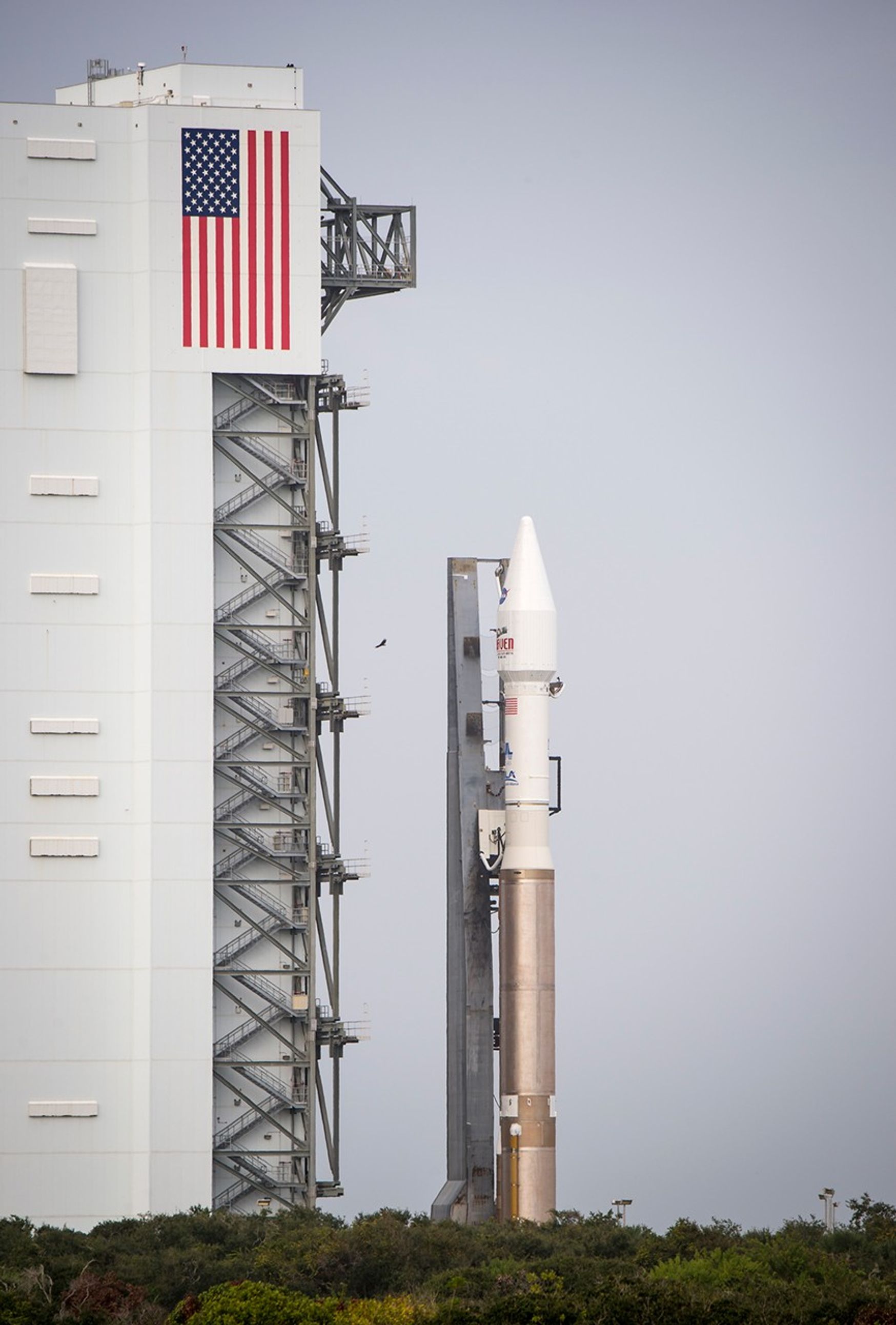 Two days before the scheduled launch to Mars, the United Launch Alliance Atlas V rocket and NASA's Mars Atmosphere and Volatile Evolution (MAVEN) spacecraft rolled out of the Cape Canaveral Air Force Station Space Launch Complex 41 Vertical Integration Facility to the launch pad, Saturday, Nov. 16, 2013, Cape Canaveral, Florida.