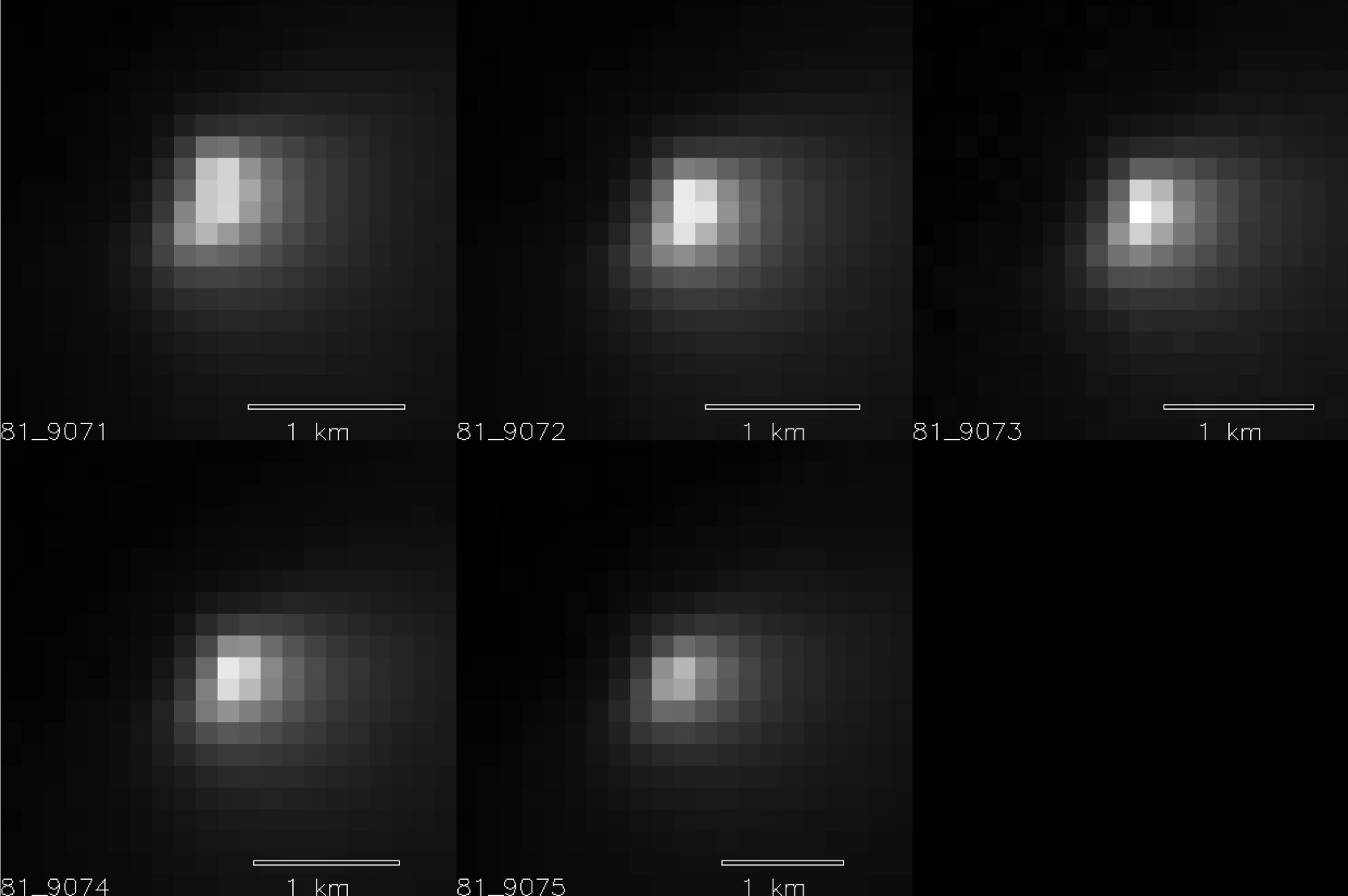 HiRISE acquired these images from distances ranging from 86,000 to 93,000 miles (138,000 to 150,000 kilometers) away from the nucleus, as comet Siding Spring made its closest approach to Mars. At those distances, each pixel covers an area from about 450 to 580 feet (138 to 177 meters). The scale bar on each image is 0.62 mile (1 kilometer).