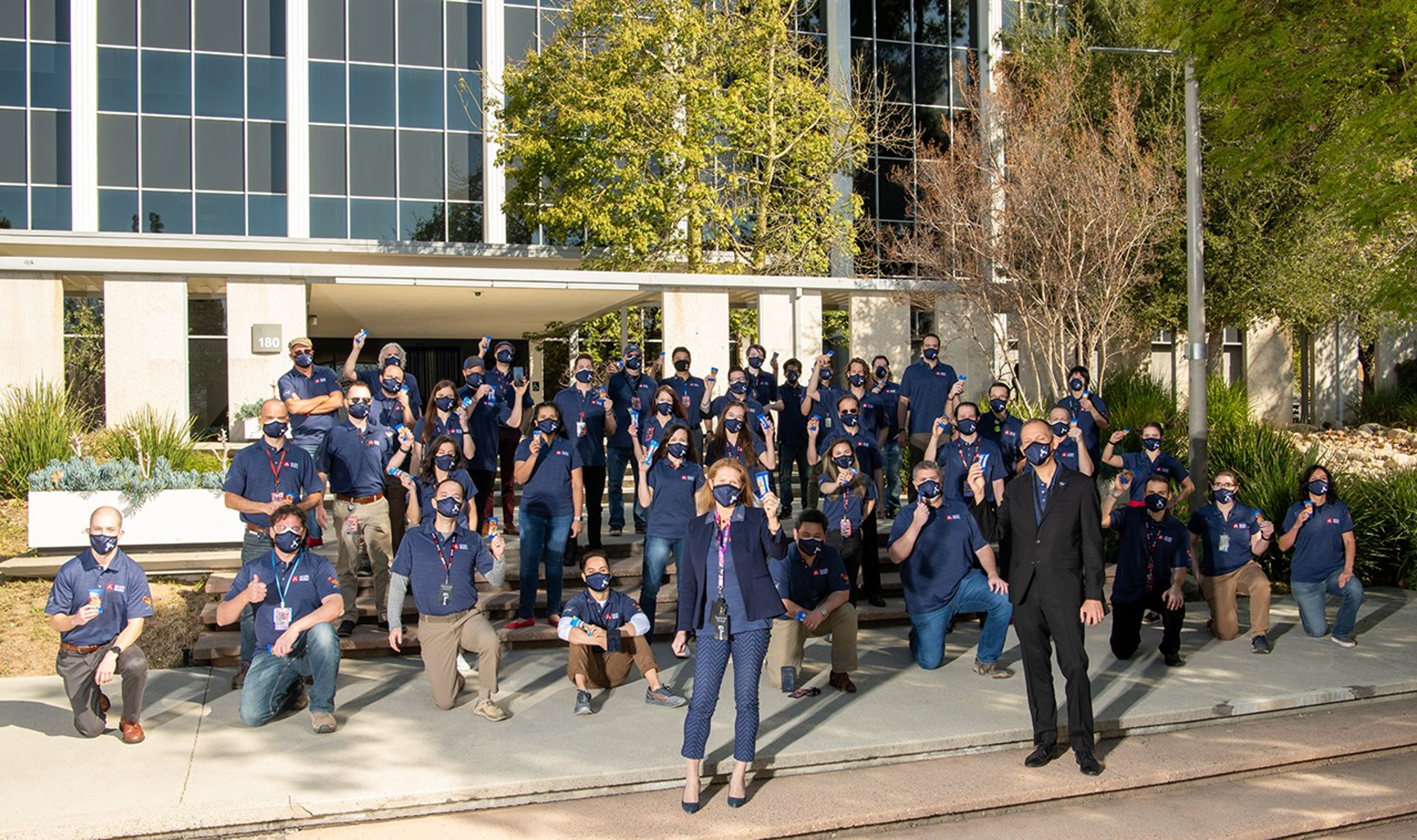 The Mars 2020 team in front of the administration building at JPL