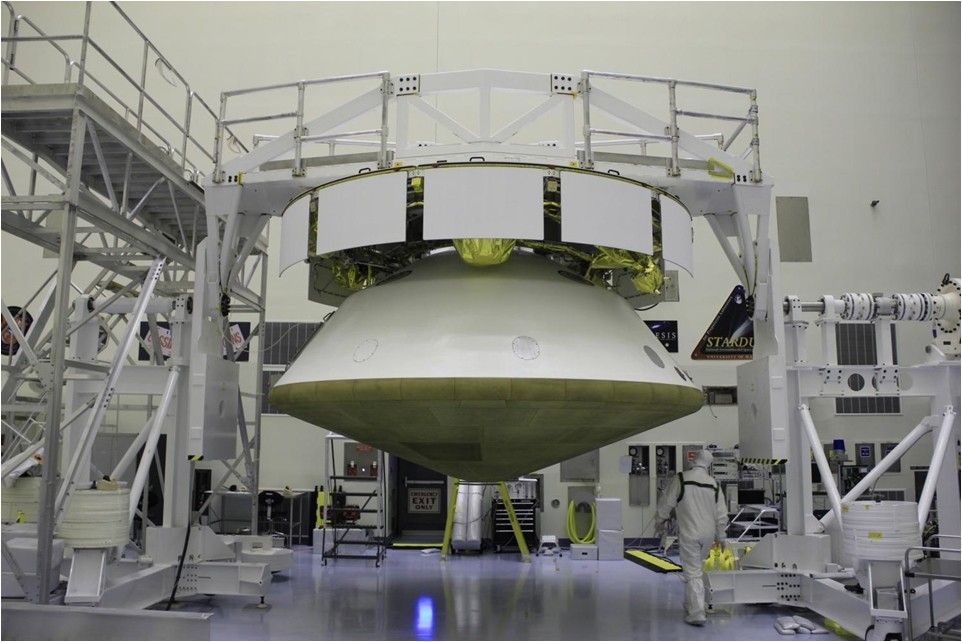 NASA's Mars Science Laboratory spacecraft has been fully stacked for flight in this photograph from inside the Payload Hazardous Servicing Facility at NASA Kennedy Space Center, Fla., in October 2011.