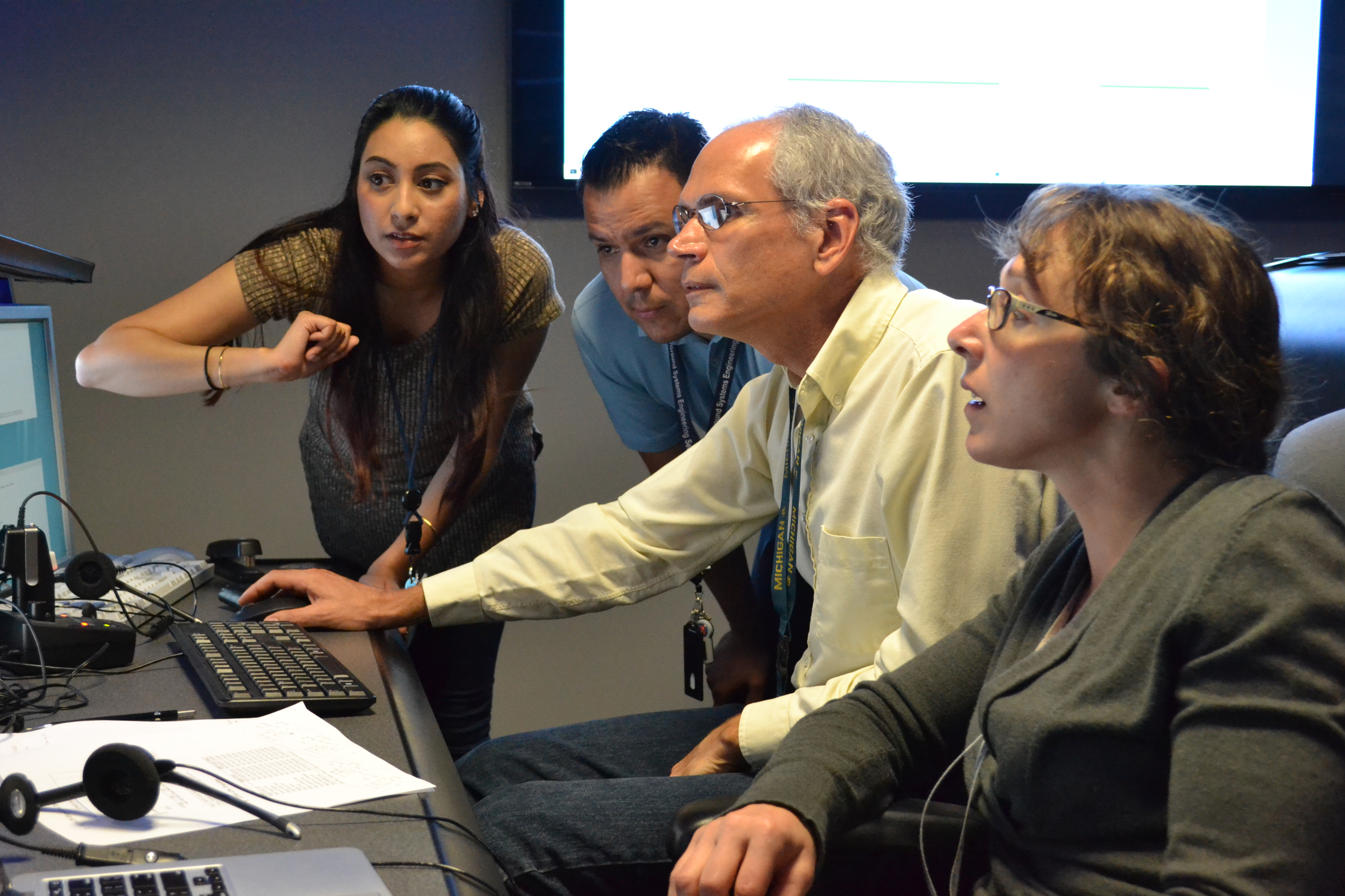 Members of Cassini’s navigation team monitor the spacecraft’s radio signal on a display in the Spaceflight Operations Facility at NASA’s Jet Propulsion Laboratory. The spacecraft performed its 127th and final close flyby of Saturn’s moon Titan April 22. Cassini used the moon’s gravity to change the trajectory so that the spacecraft will now dive through the unexplored space between Saturn and its rings about once per week until the mission ends.