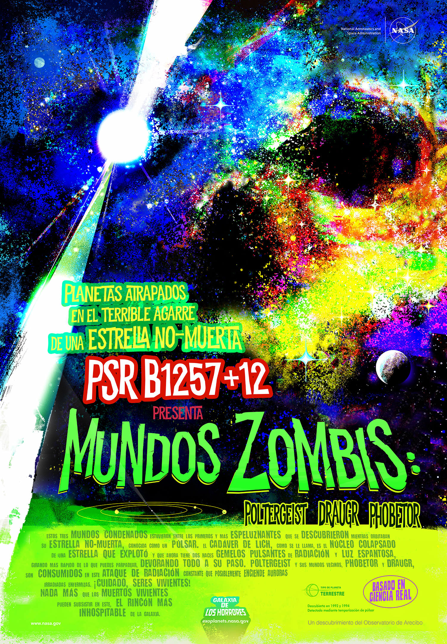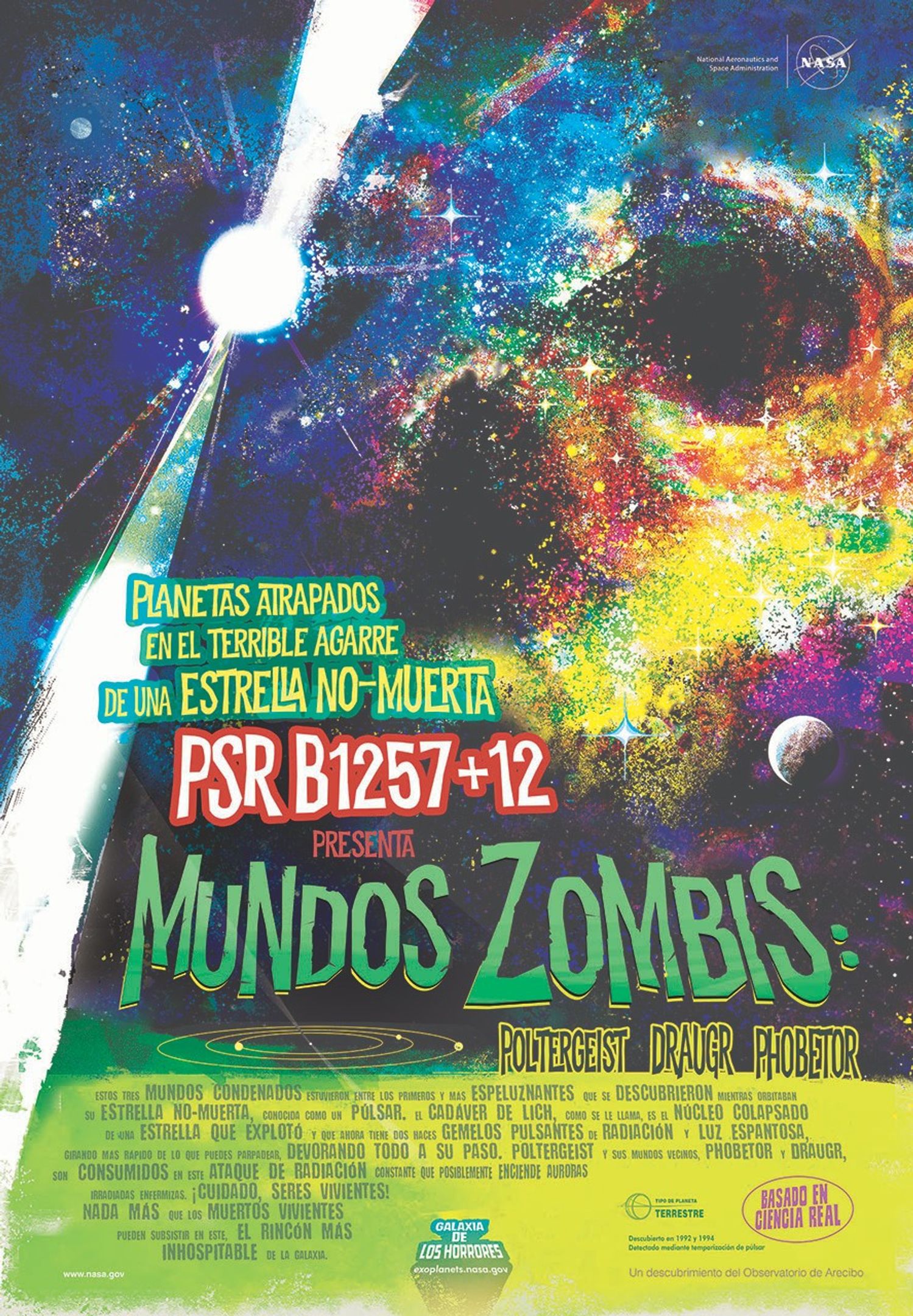 Estos tres mundos condenados estuvieron entre los primeros y más espeluznantes que se descubrieron mientras orbitaban su estrella no-muerta, conocida como un púlsar. El cadáver de Lich, como se le llama, es el núcleo colapsado de una estrella que explotó y que ahora tiene dos haces gemelos pulsantes de radiación y luz espantosa, girando más rápido de lo que puedes parpadear, devorando todo a su paso. Poltergeist y sus mundos vecinos, Phobetor y Draugr, son consumidos en este ataque de radiación constante que posiblemente enciende auroras irradiadas enfermizas. ¡Cuidado, seres vivientes! Solo los muertos vivientes pueden sobrevivir en este rincón, el más inhospitable de la galaxia.