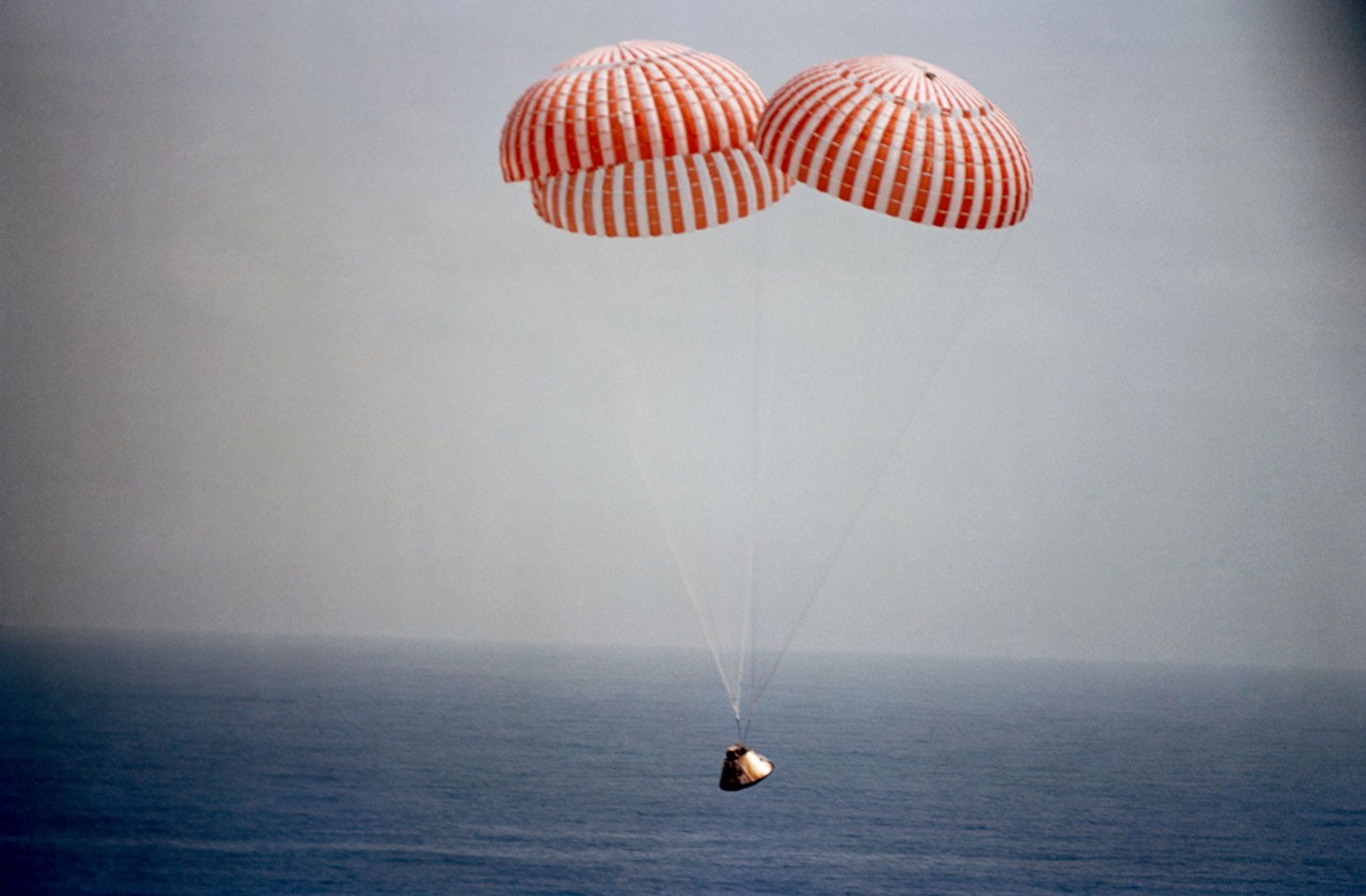 Photo – Apollo/Saturn (A/S)-11 – 500 Ft. Above Water – Chutes Deployed