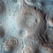 This image was acquired on May 15, 2018, by NASA's Mars Reconnaissance Orbiter. This observation shows relatively bright mounds scattered throughout darker and diverse surfaces in Chryse Planitia. These mounds are hundreds of meters in size. The largest of the mounds shows a central pit, similar to the collapsed craters found at the summit of some volcanoes on Earth. The origins of these pitted mounds or cratered cones are uncertain. They could be the result of the interaction of lava and water, or perhaps formed from the eruption of hot mud originating from beneath the surface.
