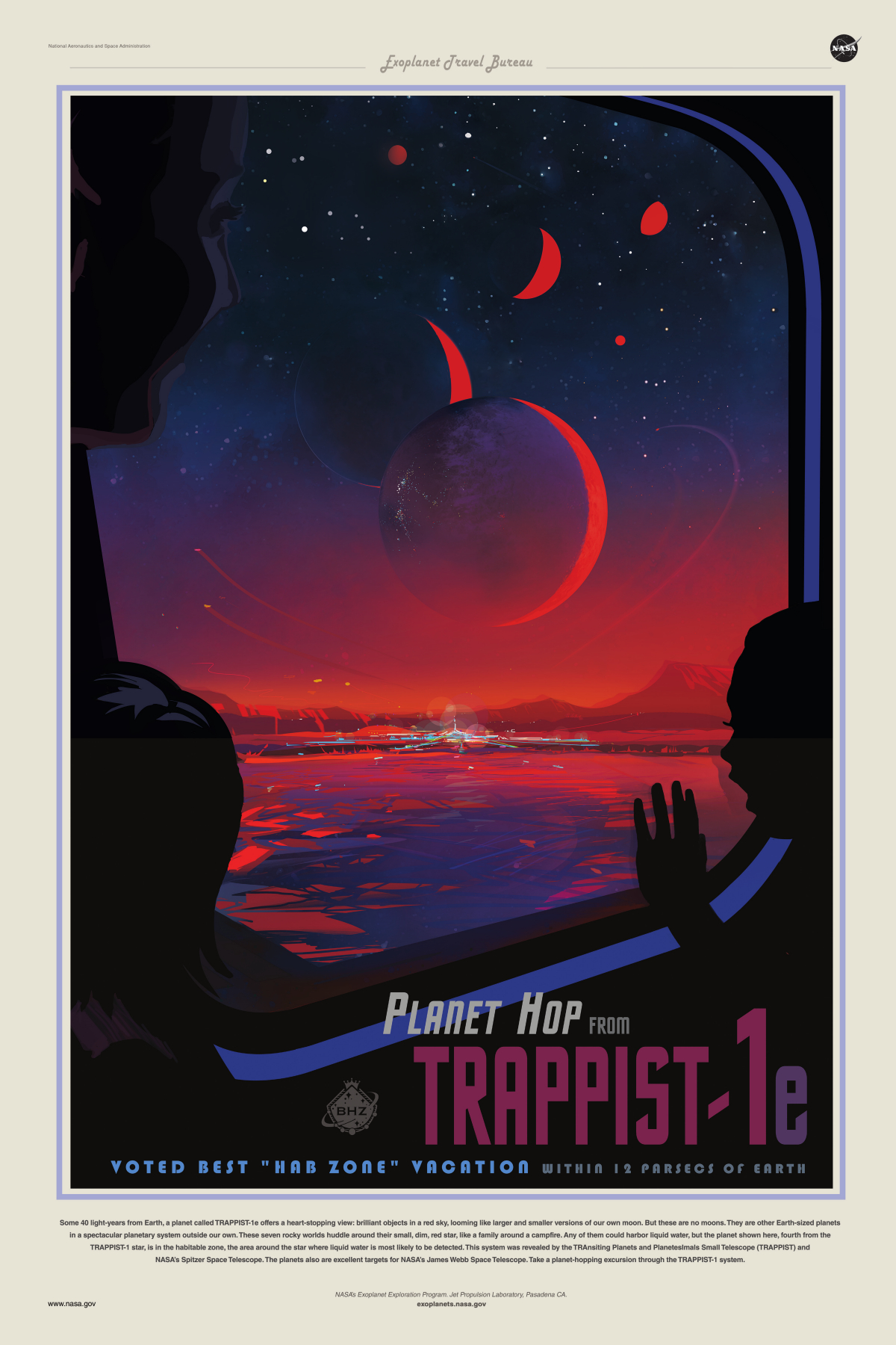 Some 40 light-years from Earth, a planet called TRAPPIST-1e offers a heart-stopping view: brilliant objects in a red sky, looming like larger and smaller versions of our own moon. But these are no moons. They are other Earth-sized planets in a spectacular planetary system outside our own. These seven rocky worlds huddle around their small, dim, red star, like a family around a campfire. Any of them could harbor liquid water, but the planet shown here, fourth from the TRAPPIST-1 star, is in the habitable zone, the area around the star where liquid water is most likely to be detected. This system was revealed by the TRAnsiting Planets and PlanetIsmals Small Telescope (TRAPPIST) and NASA's Spitzer Space Telescope. The planets are also excellent targets for NASA's James Webb Space Telescope. Take a planet-hopping excursion through the TRAPPIST-1 system.