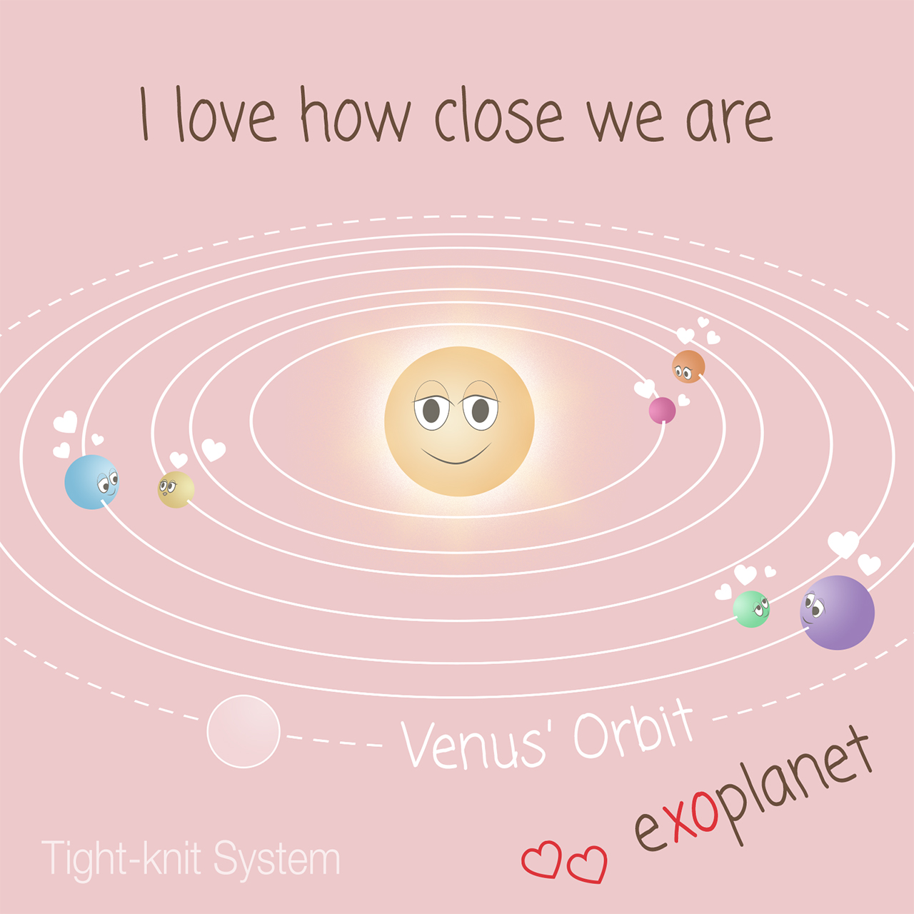 The Kepler-11 system is made up of six planets tightly-packed together. If these exoplanets from light-years away were dropped into our solar system, all six would fit between Venus and the sun. Talk about a close family.
