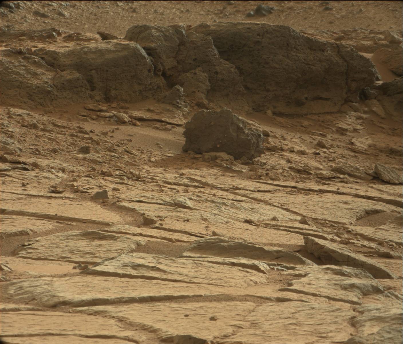 This image was taken by the right (telephoto-lens) camera of the Mast Camera (Mastcam) on the rover during the 193rd Martian day, or sol, of Curiosity's work on Mars (Feb. 20, 2013). It is presented here in raw color, as recorded by the camera under Martian lighting conditions.