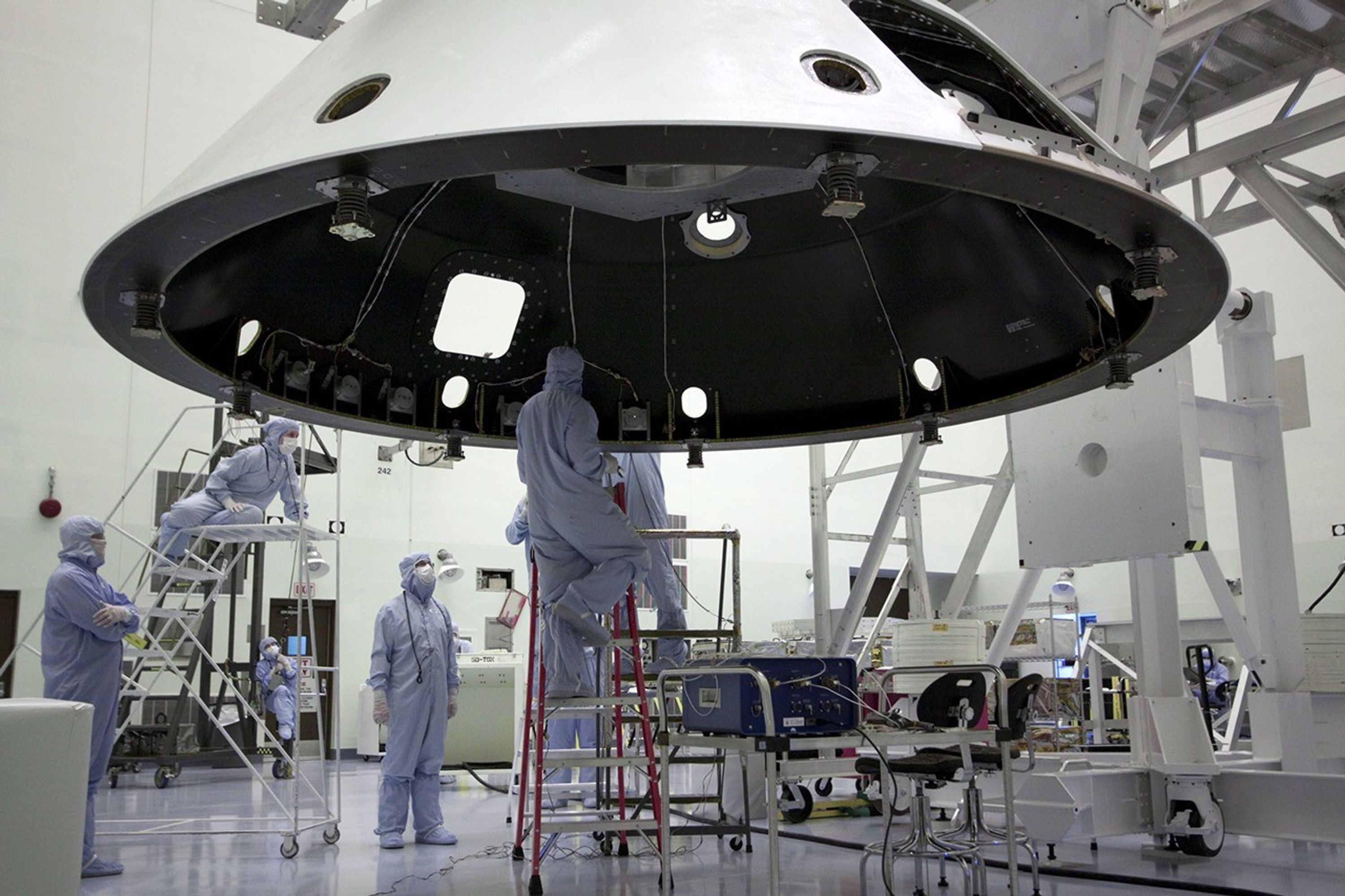 Cape Canaveral, Fla. -- At the Payload Hazardous Servicing Facility at NASA's Kennedy Space Center in Florida, technicians process the backshell for NASA's Mars Science Laboratory (MSL). The backshell carries the parachute and several components used during later stages of entry, descent and landing, and is one part of the spacecraft's heat shield which, when both are integrated is called an aeroshell. A United Launch Alliance Atlas V-541 configuration is being used to loft MSL into space. The Curiosity rover and Atlas V are expected to arrive this summer. The rover's 10 science instruments will search for habitable environments on Mars that could support life, past or present. The unique rover will use a laser to look inside rocks and release the gasses so that its spectrometer can analyze and send the data back to Earth, as well as sophisticated chemistry experiments and high-powered microscopes. MSL is scheduled to launch from Cape Canaveral Air Force Station in Florida Nov. 25 at 10:21 a.m. EST. For more information visit: www.nasa.gov/msl.