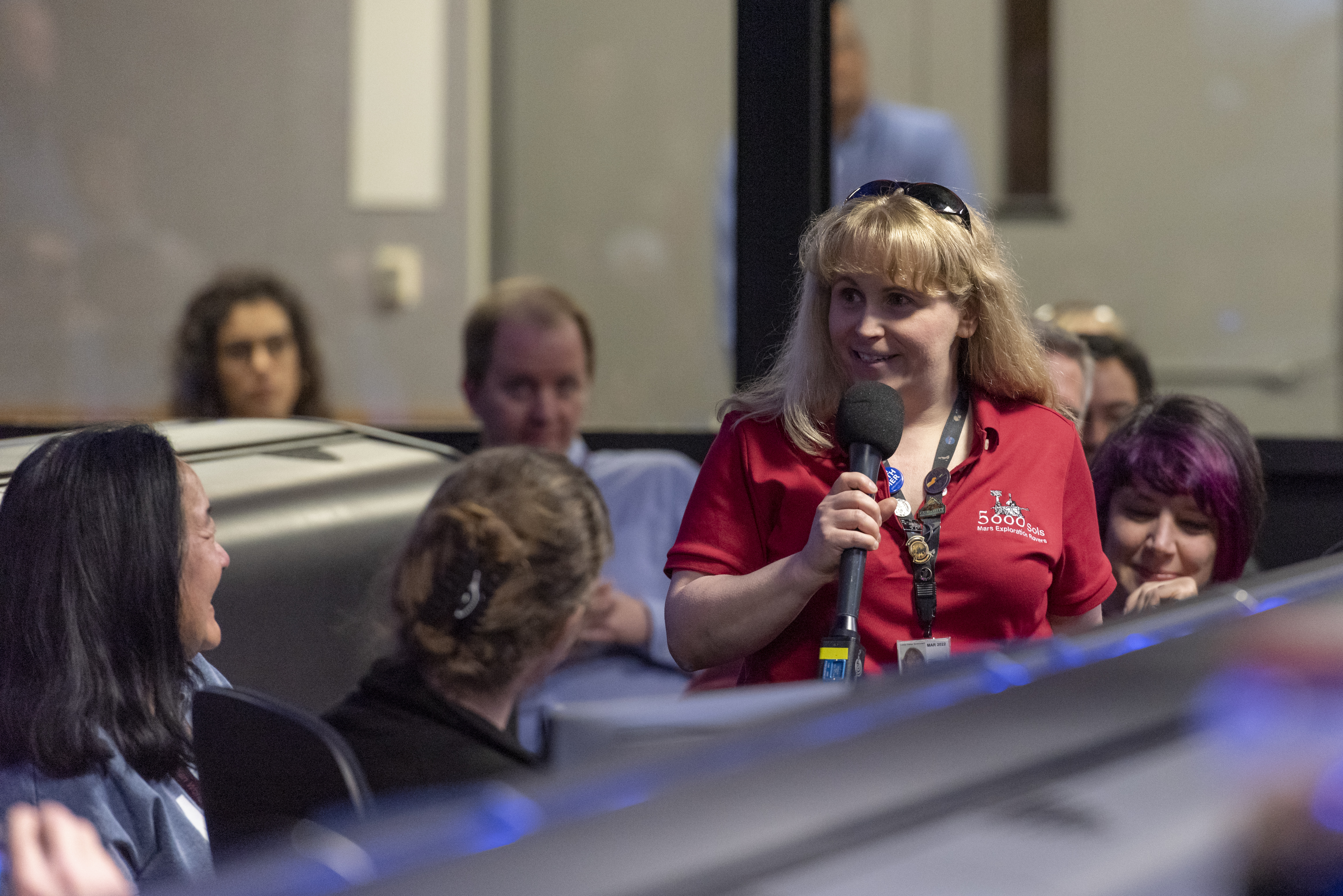 As the NASA Opportunity rover team gathered to talk about the last attempts to listen for the rover’s signals from Mars, Ashley Stroupe shared her story about working with the long-lived robotic geologist. This image was taken at Mission Control at NASA’s Jet Propulsion Laboratory in Pasadena, California, on Feb. 12, 2019.