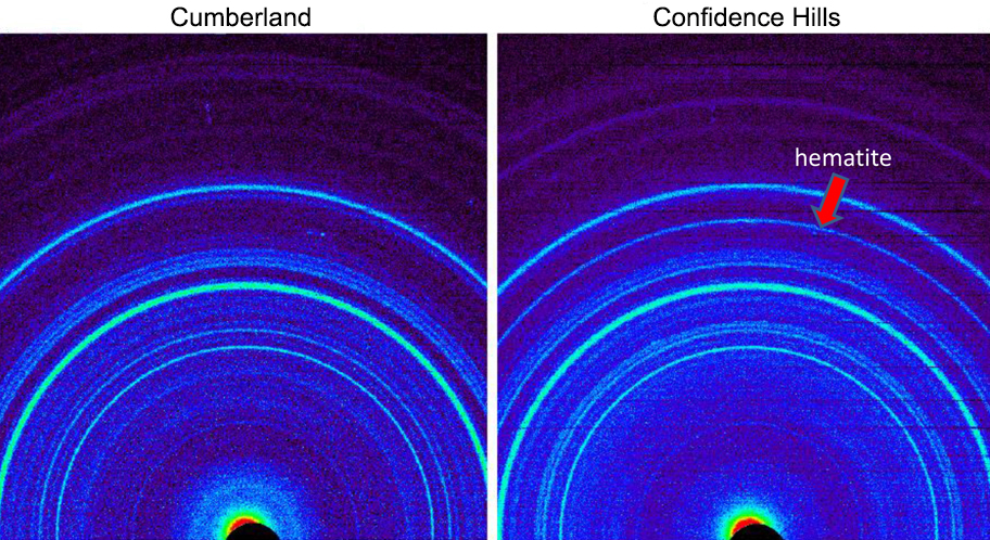 Hematite is an iron-oxide mineral. The rocks examined at Yellowknife Bay also contained iron oxides, predominantly magnetite. A much higher ratio of hematite to magnetite at Confidence Hills indicates that the ancient environmental conditions recorded in that rock involved more oxidation than the conditions recorded in the Yellowknife Bay rocks.