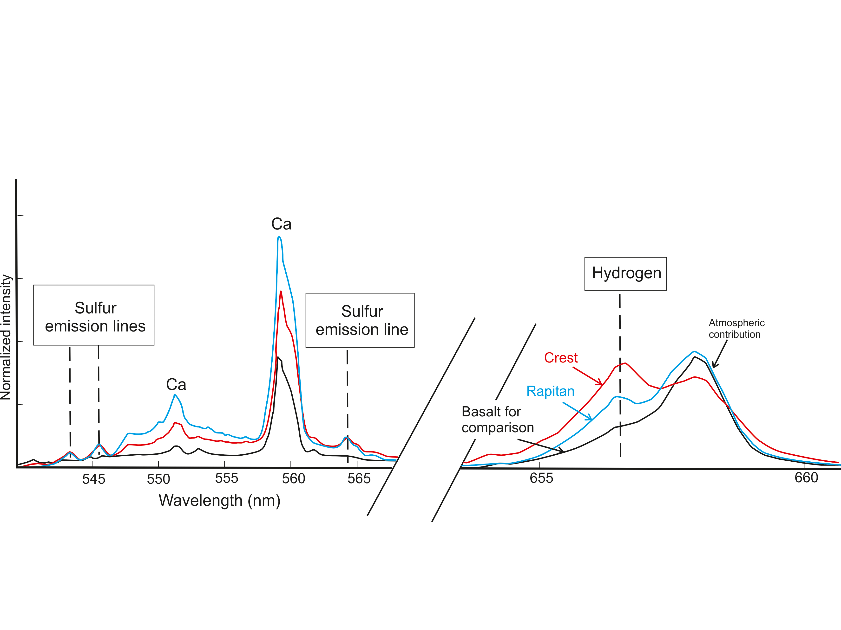 This graphic from NASA's Curiosity mission shows an analysis of the composition of two rocks called "Crest" and "Rapitan" in the "Yellowknife Bay" area of Mars. Curiosity's Chemistry and Camera (ChemCam) instrument zapped light-colored veins in these rocks with its laser and found that they contain sulfur and hydrogen. Scientists interpret these results to mean Crest and Rapitan's light-colored veins contain hydrated calcium sulfates. These minerals could be gypsum or bassanite. On Earth, calcium sulfates like gypsum form frequently in veins when relatively dilute fluid circulates at low to moderate temperatures. The ChemCam analysis helped Curiosity mission managers decide where to use the rover's drill for the first time.