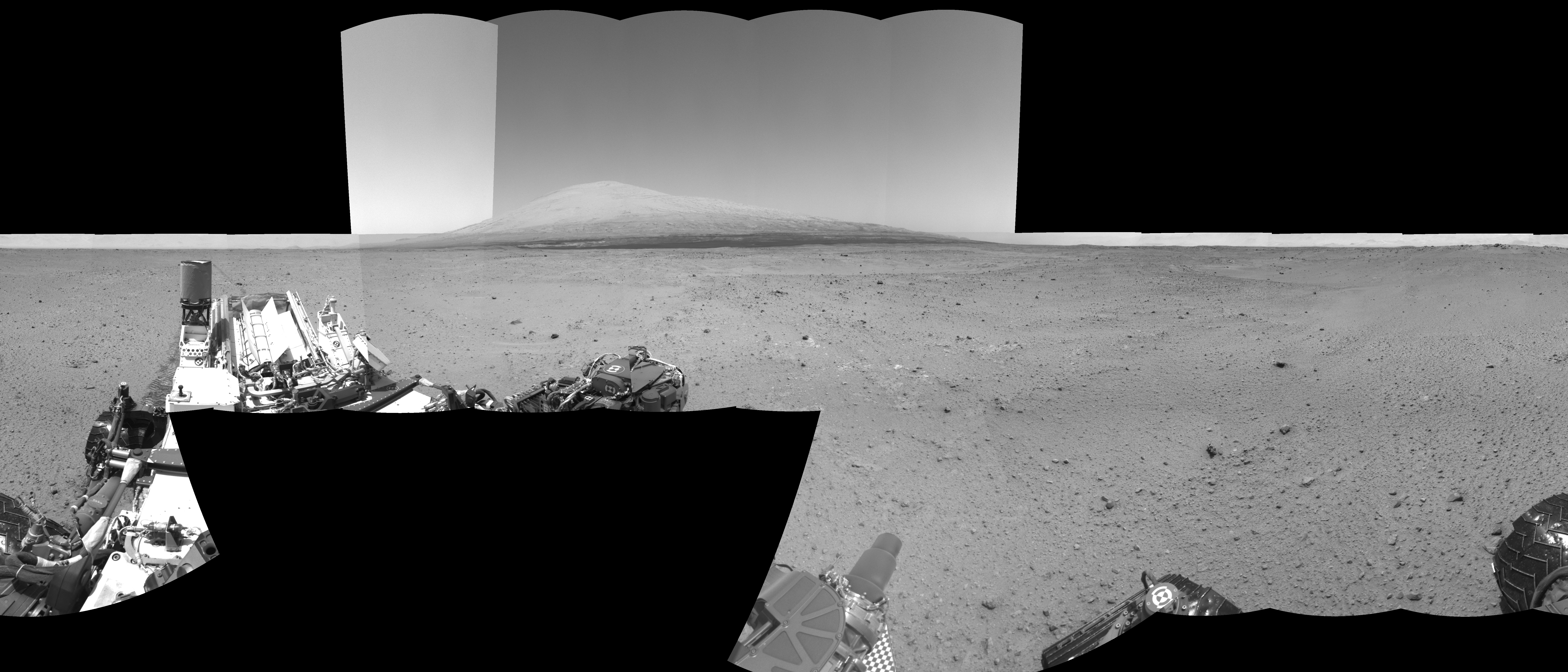 NASA's Mars rover Curiosity took 24 images in Gale Crater using its mast-mounted Right Navigation Camera (Navcam) to create this mosaic. The seam-corrected mosaic provides a 360-degree cylindrical-perspective projection panorama of the Martian surface suitable for stereo viewing, centered at 310 degrees azimuth (measured clockwise from north). This single-eye view must be combined with the partner left image to be viewed in stereo. Curiosity took the images on August 30, 2013, Sol 378 of the Mars Science Laboratory mission at drive 1132, site number 14. The local mean solar time for the image exposures was from 1 PM to 2 PM. Each Navcam image has a 45-degree field of view. CREDIT: NASA/JPL-Caltech