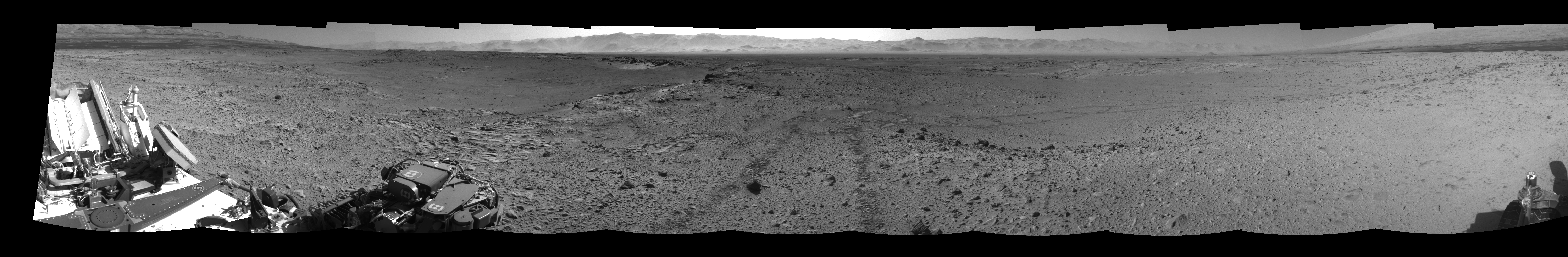 NASA's Mars rover Curiosity took 11 images in Gale Crater using its mast-mounted Right Navigation Camera (Navcam) to create this mosaic. The seam-corrected mosaic provides a 352-degree cylindrical-perspective projection panorama of the Martian surface suitable for stereo viewing, centered at 352 degrees azimuth (measured clockwise from north). This single-eye view must be combined with the partner left image to be viewed in stereo. Curiosity took the images on March 08, 2014, Sol 563 of the Mars Science Laboratory mission at drive 0, site number 29. The local mean solar time for the image exposures was from 2 PM to 3 PM. Each Navcam image has a 45-degree field of view. CREDIT: NASA/JPL-Caltech