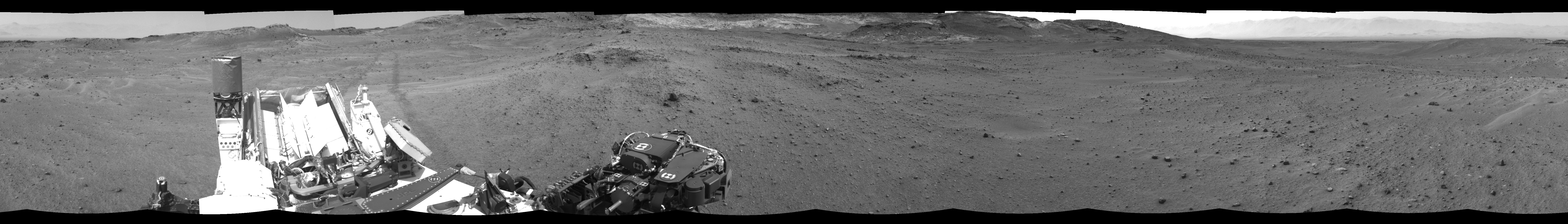 NASA's Mars rover Curiosity took 12 images in Gale Crater using its mast-mounted Right Navigation Camera (Navcam) to create this mosaic. The seam-corrected mosaic provides a 360-degree cylindrical-perspective projection panorama of the Martian surface suitable for stereo viewing, centered at 303 degrees azimuth (measured clockwise from north). This single-eye view must be combined with the partner left image to be viewed in stereo. Curiosity took the images on April 20, 2015, Sol 960 of the Mars Science Laboratory mission at drive 1676, site number 46. The local mean solar time for the image exposures was 3 PM. Each Navcam image has a 45-degree field of view. CREDIT: NASA/JPL-Caltech