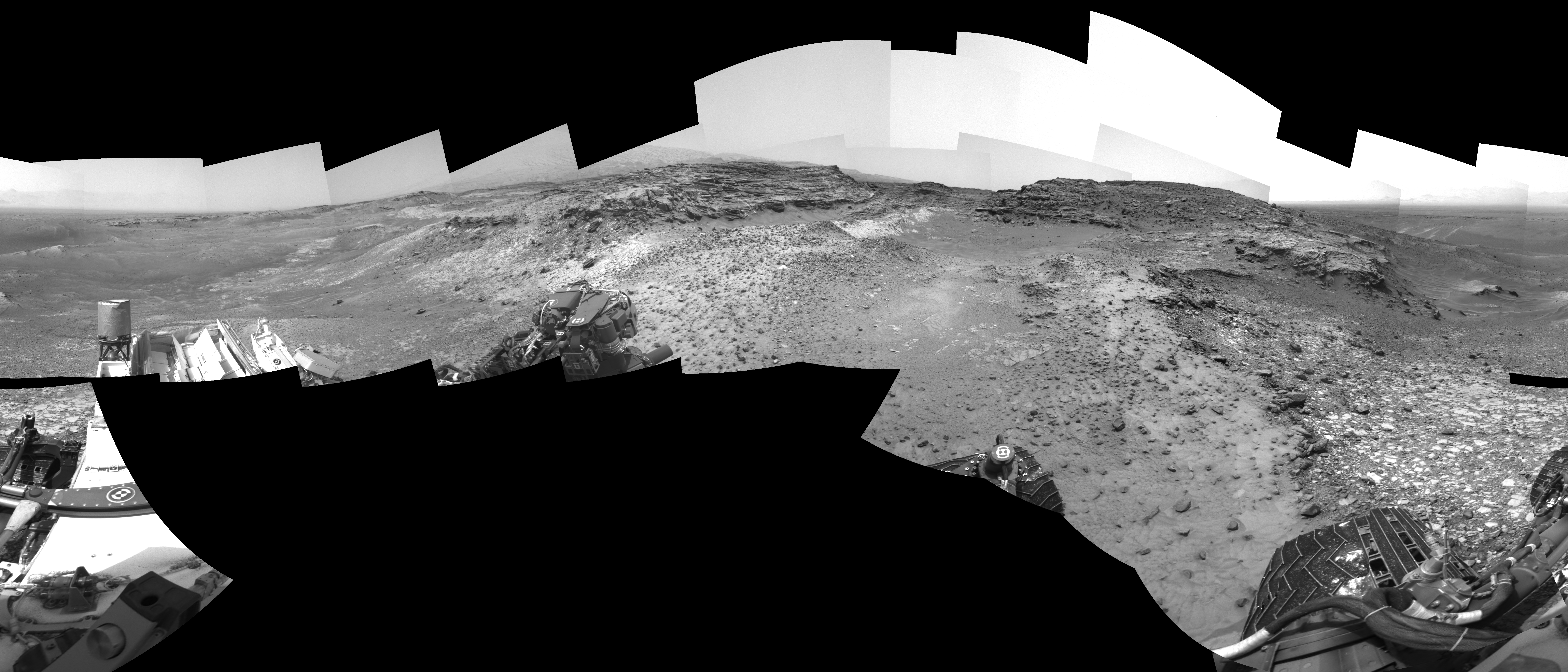 NASA's Mars rover Curiosity took 21 images in Gale Crater using its mast-mounted Right Navigation Camera (Navcam) to create this mosaic. The seam-corrected mosaic provides a 0-degree cylindrical-perspective projection panorama of the Martian surface suitable for stereo viewing, centered at 149 degrees azimuth (measured clockwise from north). This single-eye view must be combined with the partner left image to be viewed in stereo. Curiosity took the images on May 21, 2015, Sol 991 of the Mars Science Laboratory mission at drive 1146, site number 48. The local mean solar time for the image exposures was from 1 PM to 2 PM. Each Navcam image has a 45-degree field of view. CREDIT: NASA/JPL-Caltech