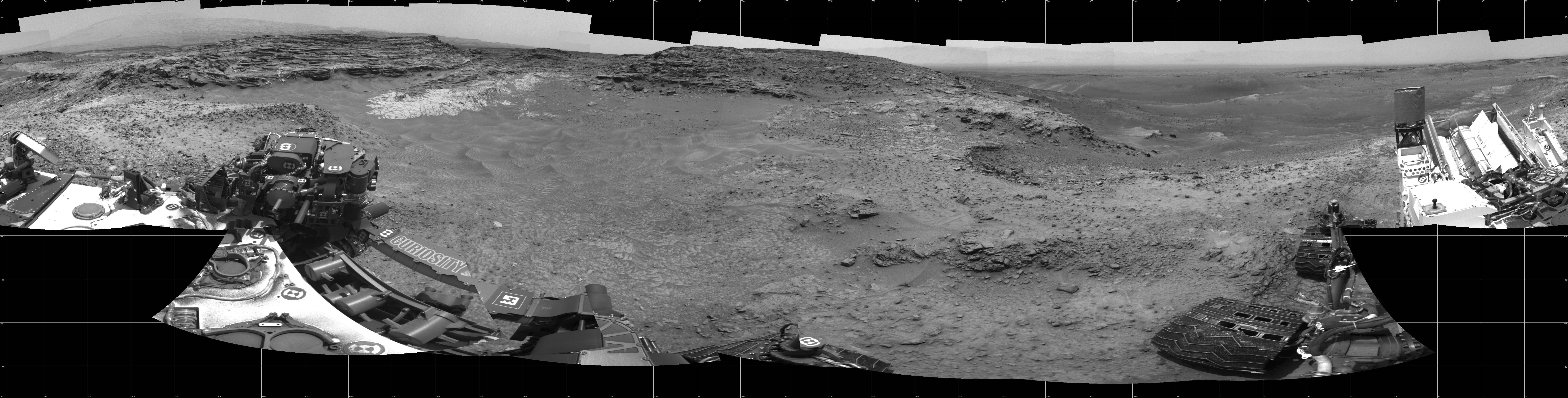 NASA's Mars rover Curiosity took 24 images in Gale Crater using its mast-mounted Left Navigation Camera (Navcam) to create this mosaic. The seam-corrected mosaic provides a 360-degree cylindrical projection panorama of the Martian surface centered at 260 degrees azimuth (measured clockwise from north). Curiosity took the images on May 22, 2015, Sol 992 of the Mars Science Laboratory mission at drive 1194, site number 48. The local mean solar time for the image exposures was from 1 PM to 2 PM. Each Navcam image has a 45 degree field of view. CREDIT: NASA/JPL-Caltech