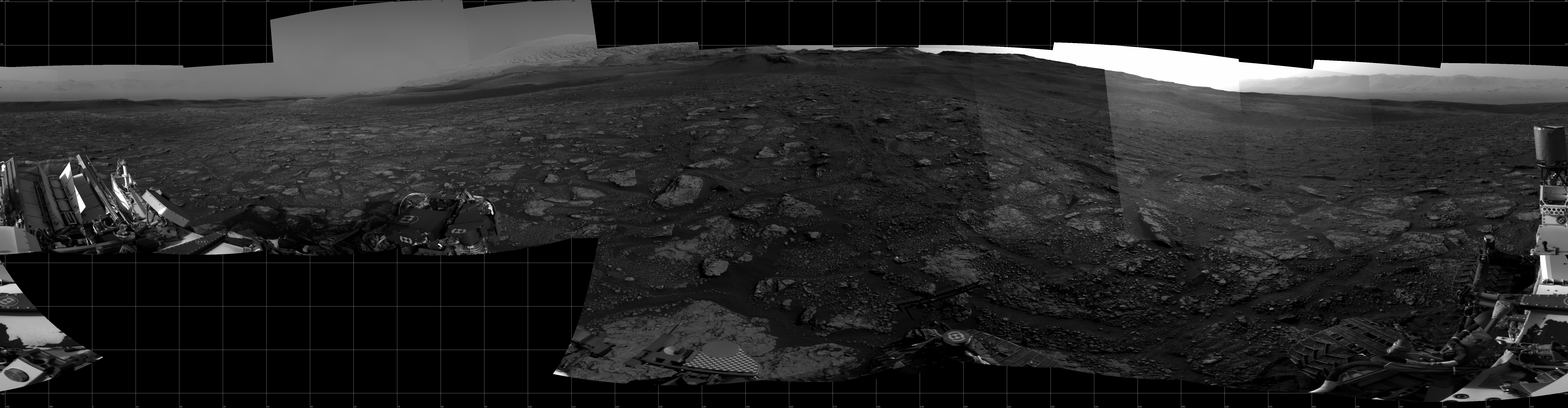 NASA's Mars rover Curiosity took 23 images in Gale Crater using its mast-mounted Right Navigation Camera (Navcam) to create this mosaic. The seam-corrected mosaic provides a 360-degree cylindrical projection panorama of the Martian surface centered at 159 degrees azimuth (measured clockwise from north). Curiosity took the images on October 09, 2020, Sols 2906-2904 of the Mars Science Laboratory mission at drive 2188, site number 82. The local mean solar time for the image exposures was from 3 PM to 5 PM. Each Navcam image has a 45 degree field of view. CREDIT: NASA/JPL-Caltech