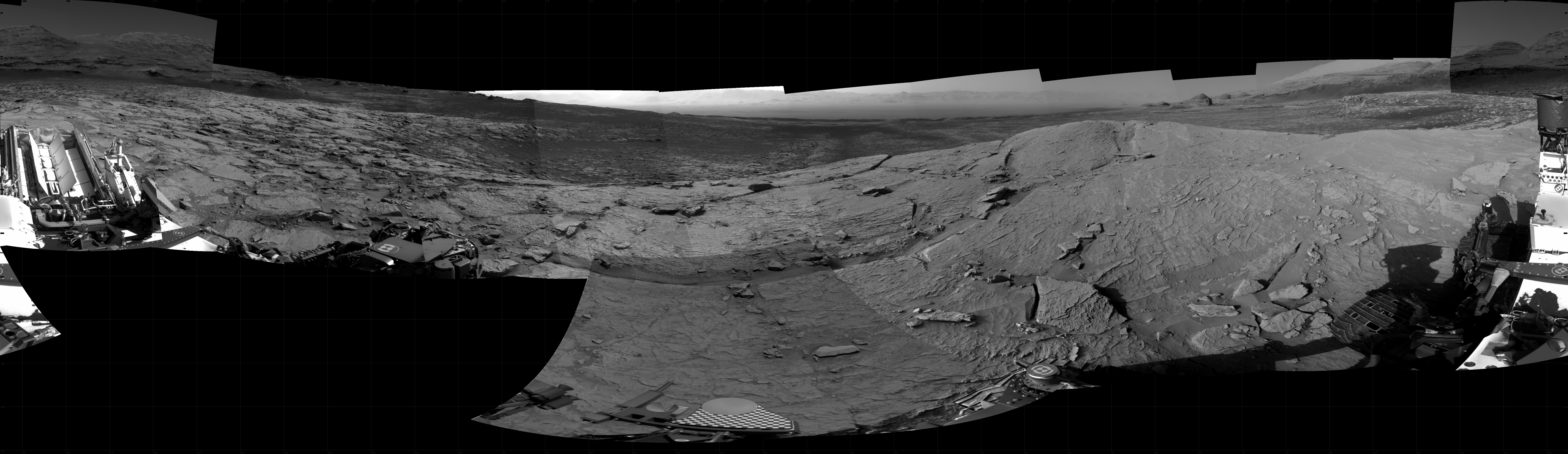 NASA’s Mars rover Curiosity took 24 images in Gale Crater using its mast-mounted Right Navigation Camera (Navcam) to create this mosaic. The seam-corrected mosaic provides a 360-degree cylindrical projection panorama of the Martian surface centered at 325 degrees azimuth (measured clockwise from north). Curiosity took the images on April 20, 2021, Sols 3094-3088 of the Mars Science Laboratory mission at drive 2578, site number 87. The local mean solar time for the image exposures was from 4 PM to 12 PM. Each Navcam image has a 45 degree field of view. CREDIT: NASA/JPL-Caltech