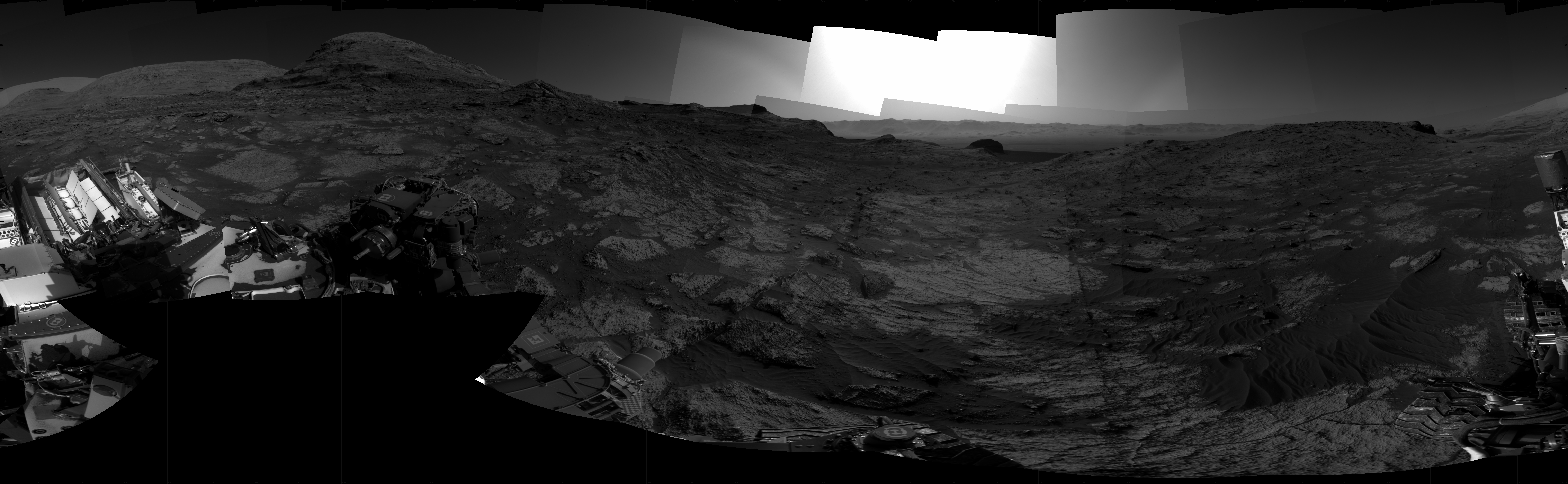 NASA's Mars rover Curiosity took 31 images in Gale Crater using its mast-mounted Right Navigation Camera (Navcam) to create this mosaic. The seam-corrected mosaic provides a 360-degree cylindrical projection panorama of the Martian surface centered at 272 degrees azimuth (measured clockwise from north). Curiosity took the images on July 30, 2021, Sol 3192 of the Mars Science Laboratory mission at drive 232, site number 90. The local mean solar time for the image exposures was from 3 PM to 4 PM. Each Navcam image has a 45 degree field of view. CREDIT: NASA/JPL-Caltech