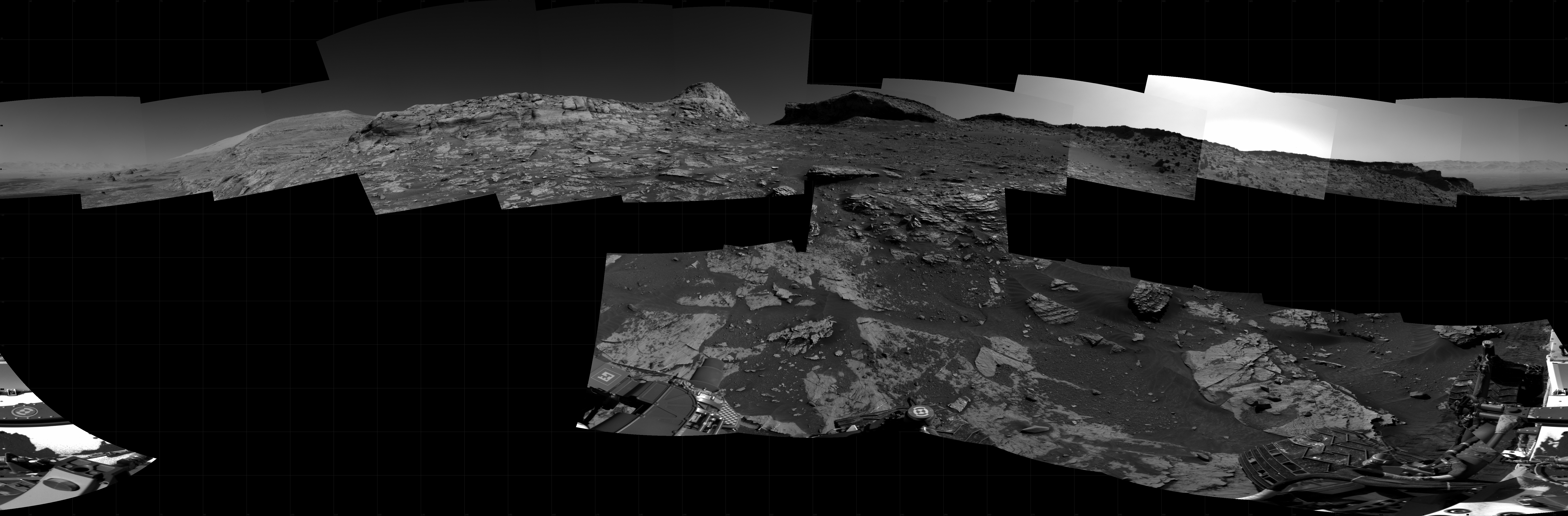 NASA's Mars rover Curiosity took 20 images in Gale Crater using its mast-mounted Right Navigation Camera (Navcam) to create this mosaic. The seam-corrected mosaic provides a 360-degree cylindrical projection panorama of the Martian surface centered at 213 degrees azimuth (measured clockwise from north). Curiosity took the images on November 04, 2021, Sol 3286 of the Mars Science Laboratory mission at drive 2132, site number 91. The local mean solar time for the image exposures was from 2 PM to 3 PM. Each Navcam image has a 45 degree field of view. CREDIT: NASA/JPL-Caltech