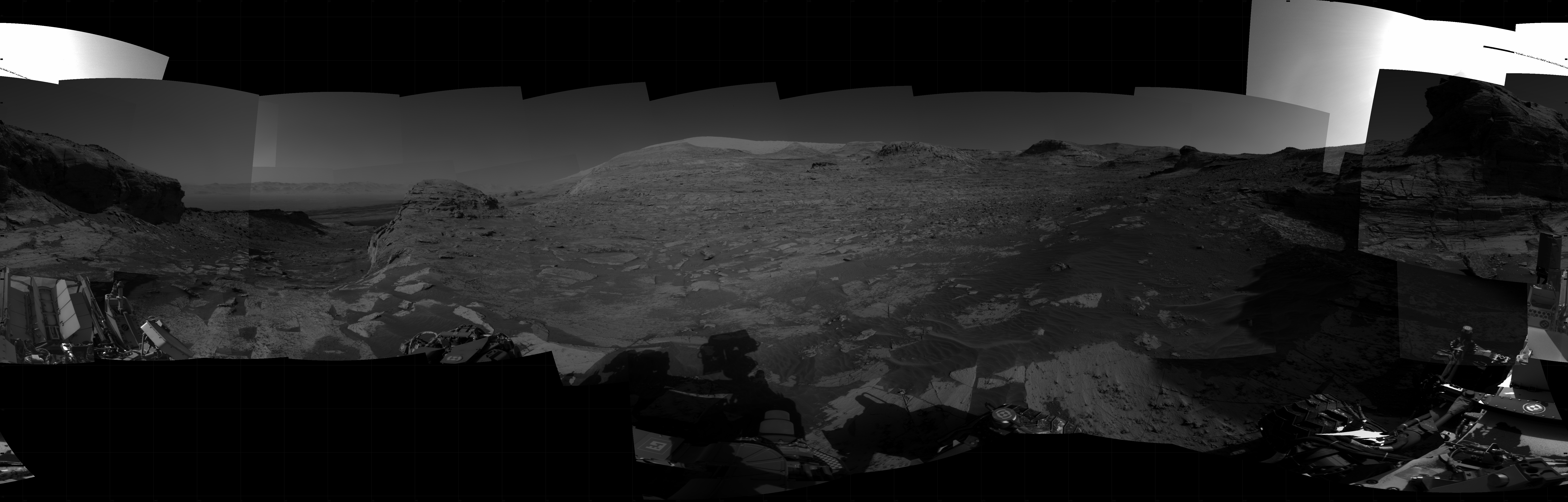 NASA's Mars rover Curiosity took 34 images in Gale Crater using its mast-mounted Right Navigation Camera (Navcam) to create this mosaic. The seam-corrected mosaic provides a 360-degree cylindrical projection panorama of the Martian surface centered at 125 degrees azimuth (measured clockwise from north). Curiosity took the images on December 17, 2021, Sols 3328-3326 of the Mars Science Laboratory mission at drive 270, site number 92. The local mean solar time for the image exposures was from 11 AM to 3 PM. Each Navcam image has a 45 degree field of view. CREDIT: NASA/JPL-Caltech