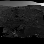 NASA's Mars rover Curiosity took 24 images in Gale Crater using its mast-mounted Right Navigation Camera (Navcam) to create this mosaic. The seam-corrected mosaic provides a 360-degree cylindrical projection panorama of the Martian surface centered at 164 degrees azimuth (measured clockwise from north). Curiosity took the images on April 26, 2024, Sol 4166 of the Mars Science Laboratory mission at drive 3182, site number 106. The local mean solar time for the image exposures was from 3 PM to 4 PM. Each Navcam image has a 45 degree field of view.