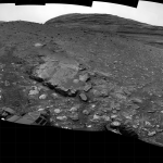 NASA's Mars rover Curiosity took 32 images in Gale Crater using its mast-mounted Right Navigation Camera (Navcam) to create this mosaic. The seam-corrected mosaic provides a 360-degree cylindrical projection panorama of the Martian surface centered at 194 degrees azimuth (measured clockwise from north). Curiosity took the images on June 05, 2024, Sols 4205-4200 of the Mars Science Laboratory mission at drive 2484, site number 107. The local mean solar time for the image exposures was from 1 PM to 2 PM. Each Navcam image has a 45 degree field of view.