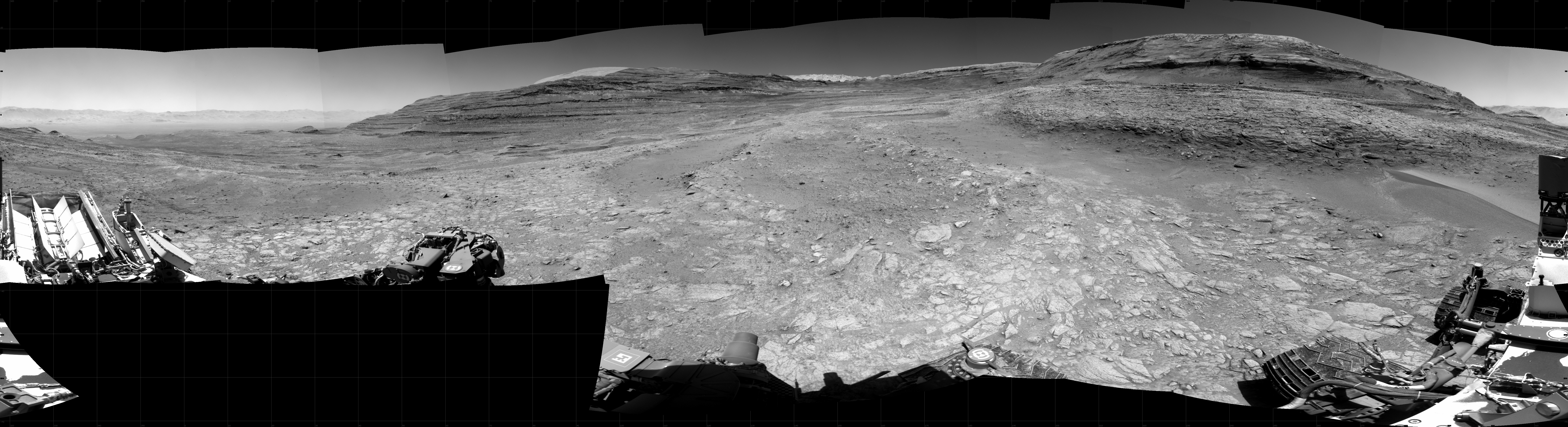 NASA's Mars rover Curiosity took 31 images in Gale Crater using its mast-mounted Right Navigation Camera (Navcam) to create this mosaic. The seam-corrected mosaic provides a 360-degree cylindrical projection panorama of the Martian surface centered at 138 degrees azimuth (measured clockwise from north). Curiosity took the images on September 15, 2025, Sol 4660 of the Mars Science Laboratory mission at drive 2742, site number 118. The local mean solar time for the image exposures was 12 PM. Each Navcam image has a 45 degree field of view.