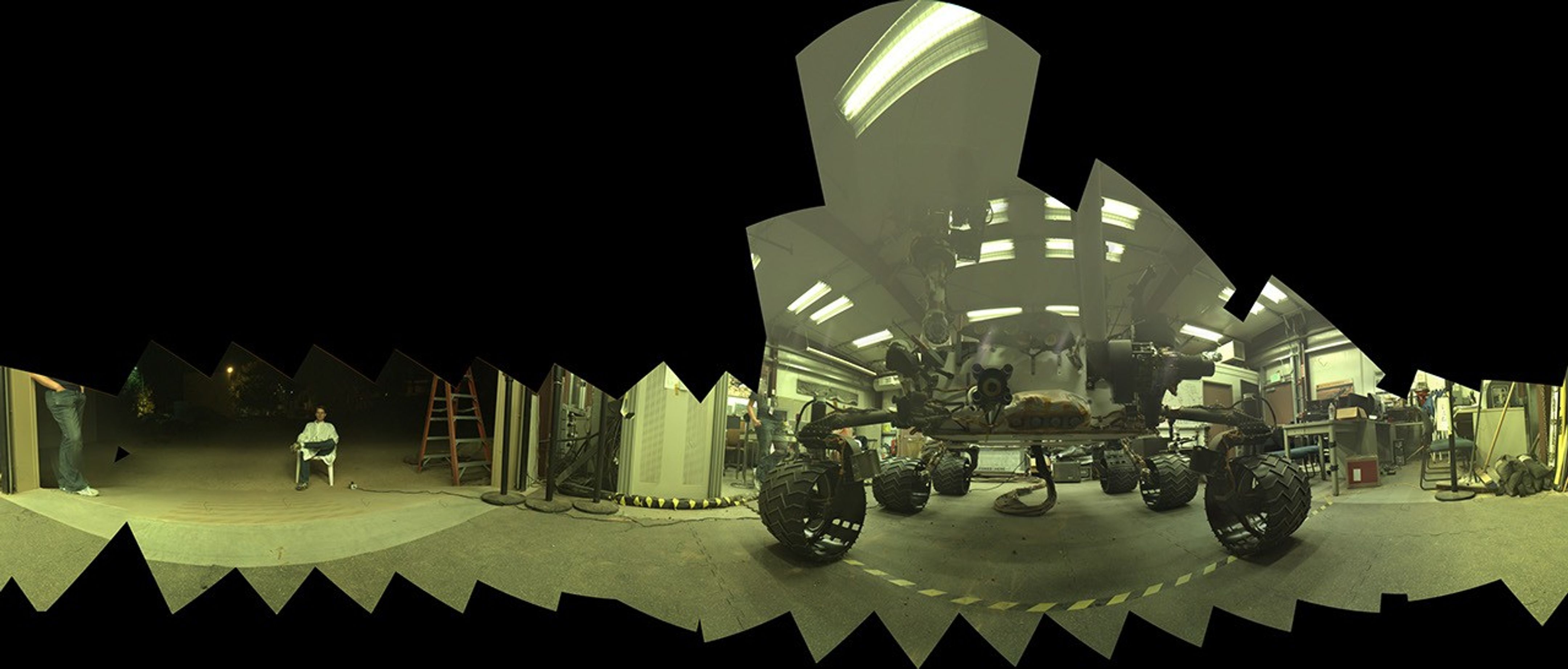 This rehearsal in California led to a dramatic Aug. 5, 2013, selfie of Curiosity, online at http://mars.nasa.gov/multimedia/images/?ImageID=7437. Curiosity's arm-mounted Mars Hand Lens Imager (MAHLI) camera took 92 of component images that were assembled into that mosaic. The rover team positioned the camera lower in relation to the rover body than for any previous full self-portrait of Curiosity.