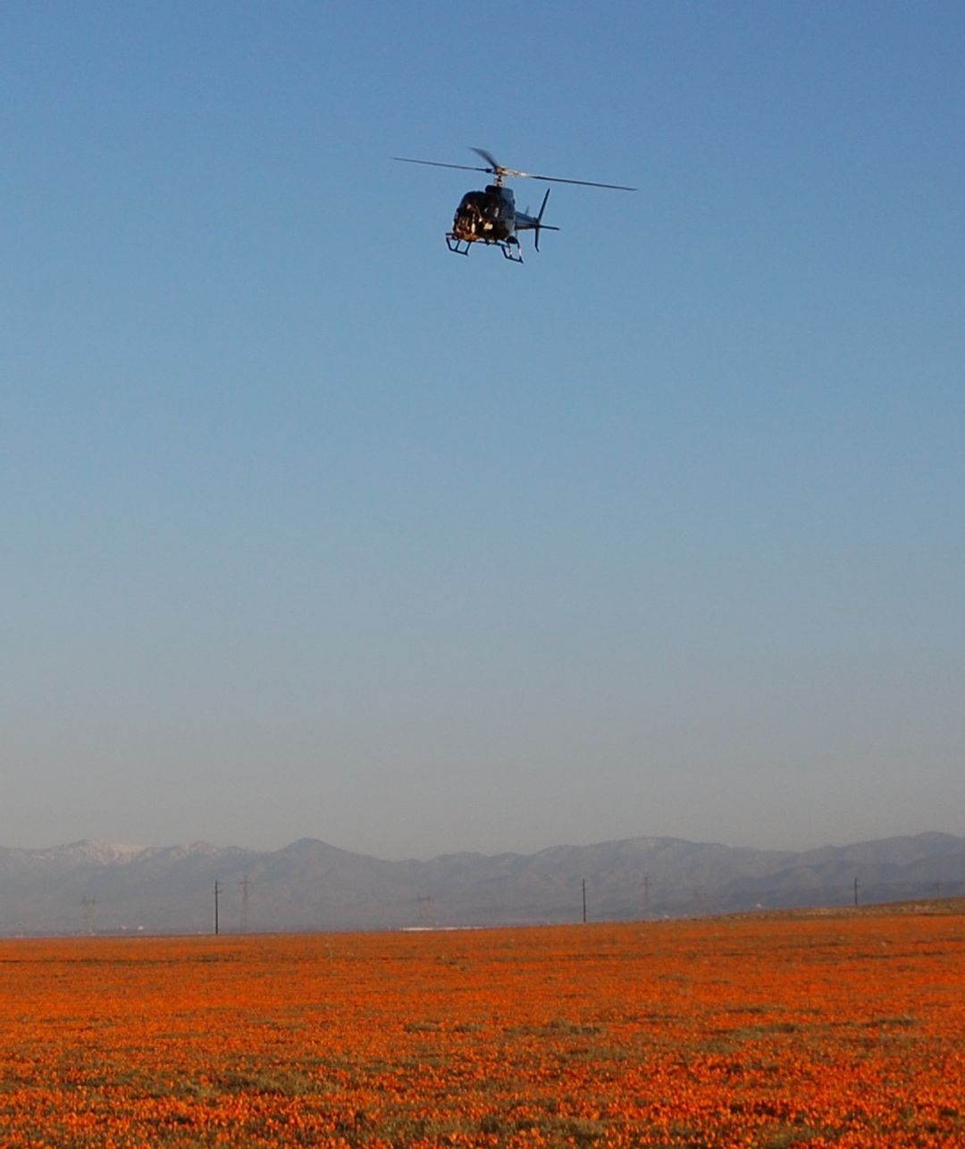 The descents during that day of the multi-week testing program were flown near Lancaster, Calif., over a patch of desert with abundant California poppies.